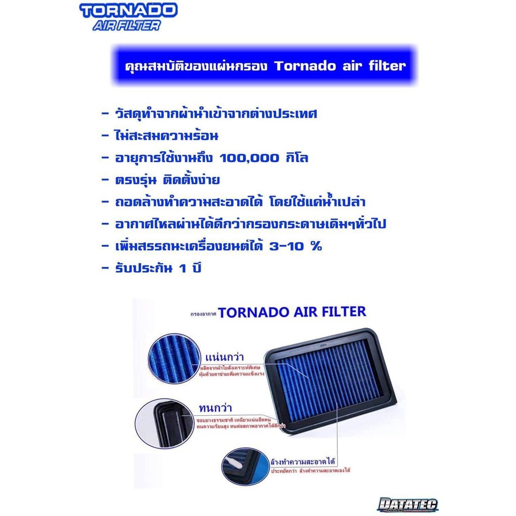 (แท้100%)กรองอากาศ DATATEC TORNADO Toyota Revo/New Fortuner ปี2015-2024 / Travo / HILUX CHAMP2.7L