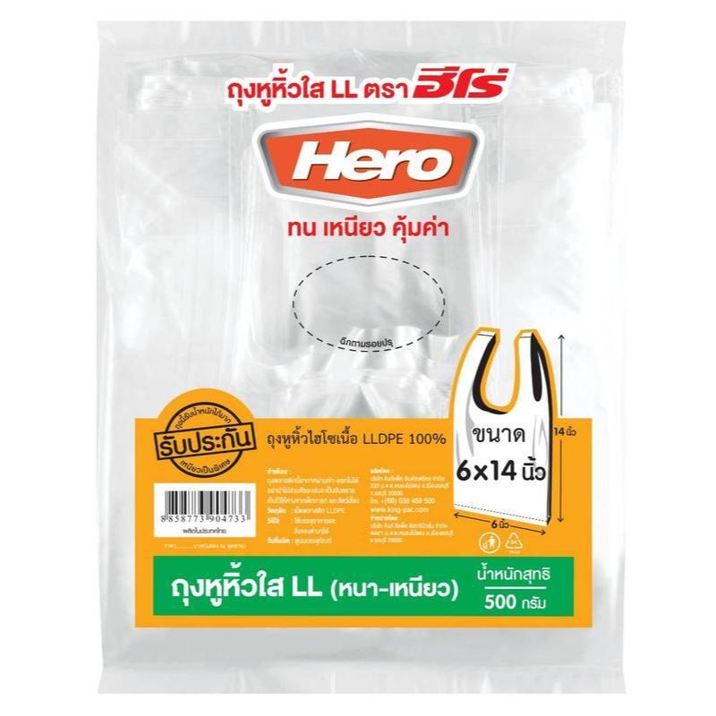 [ยกหิ้ว] ถุงหูหิ้วใสไฮโซ LL ยี่ห้อ ฮีโร่ (10 แพ็ค)