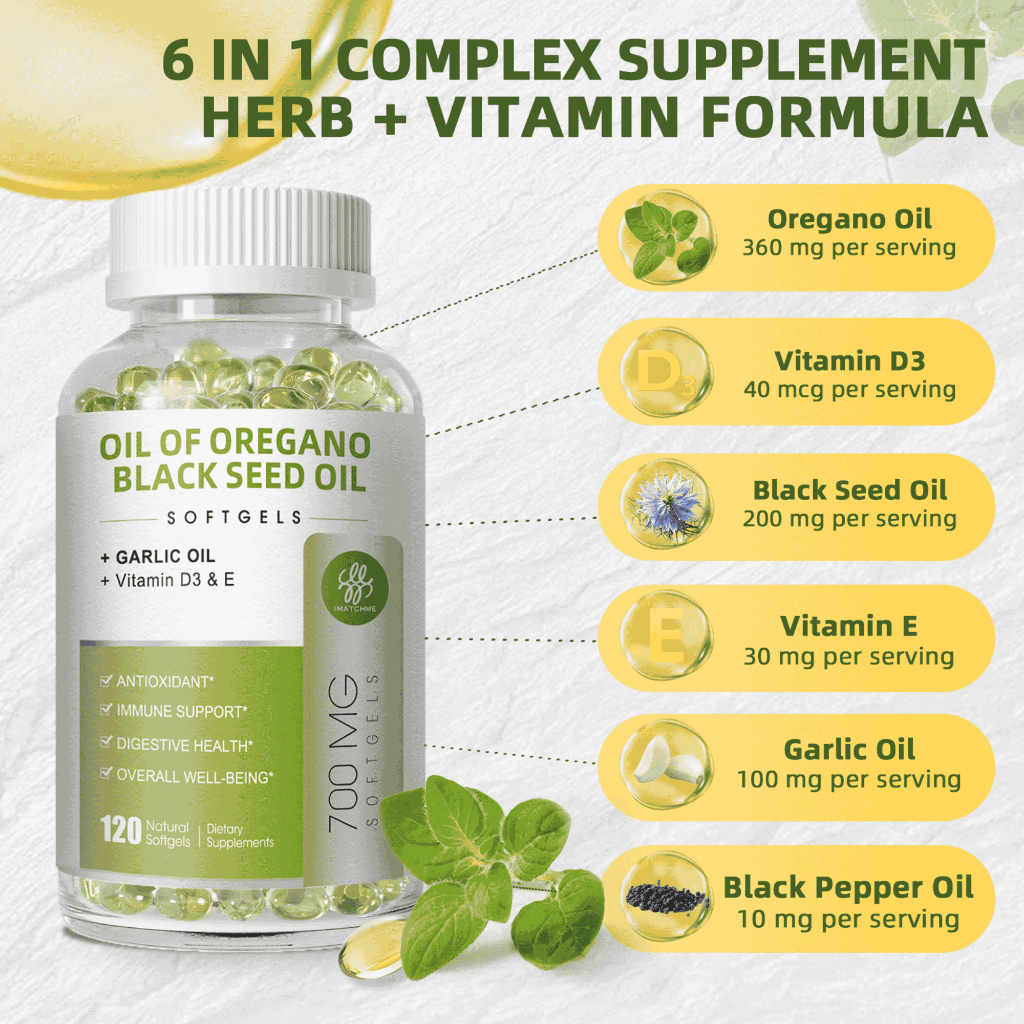 น้ํามันเจลออริกาโนผสมน้ํามันเมล็ดดํา วิตามิน ง3 & จ น้ํามันกระเทียม | ภูมิคุ้มกัน ทางเดินหายใจและย่อยอาหาร | 120 นับ