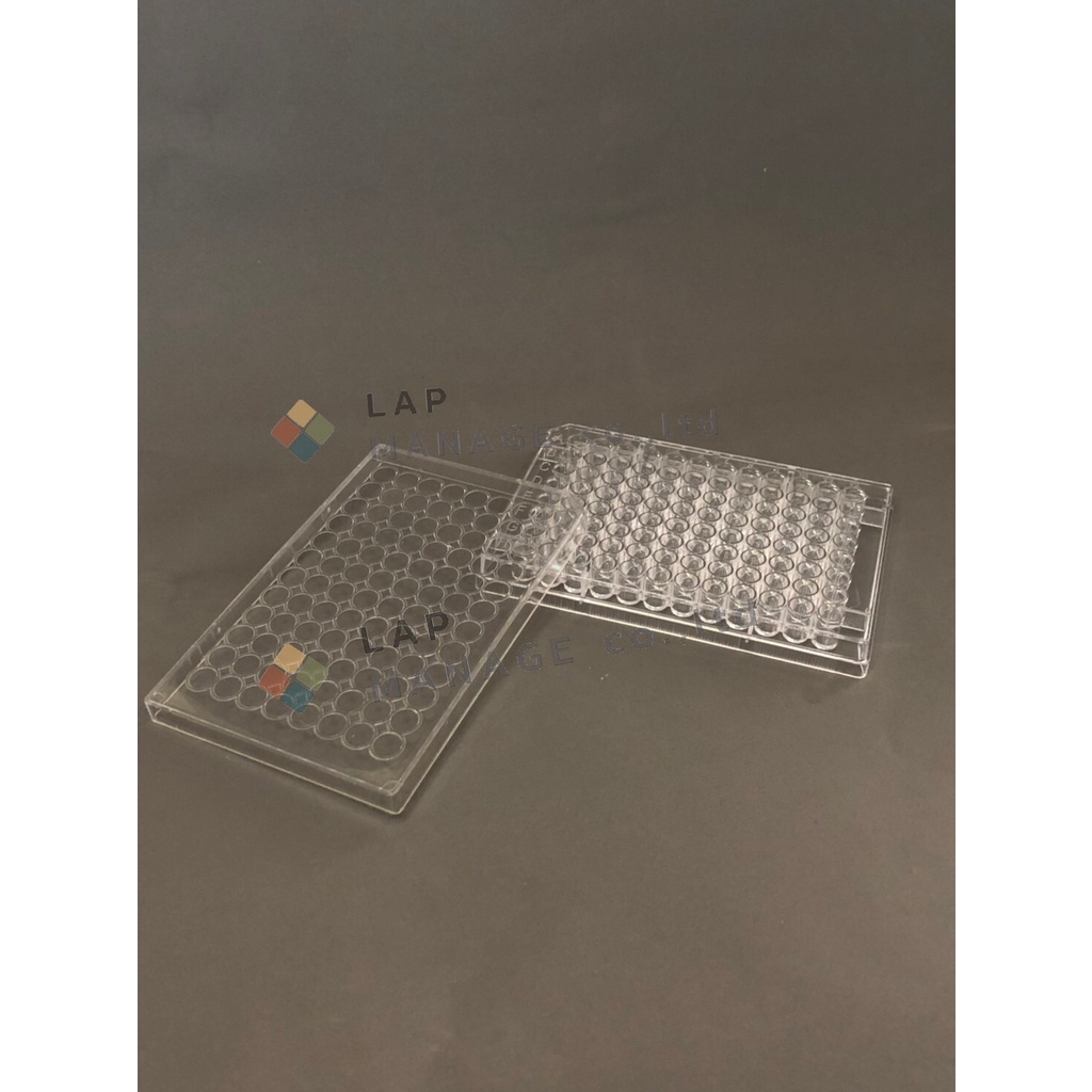Culture plate จานหลุมพลาสติกใส 96ช่อง ปราศจากเชื้อพร้อมฝาปิด ,1ชิ้น/แพ็ค