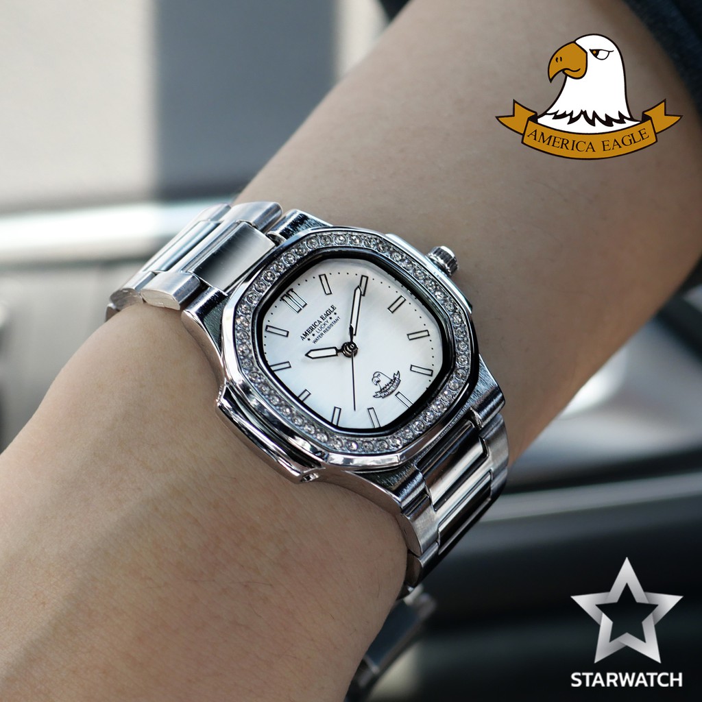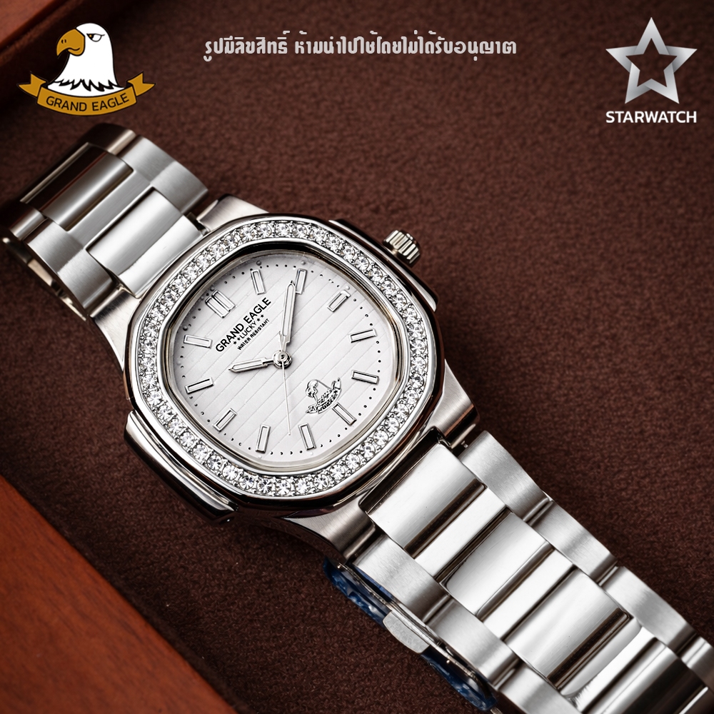 (มีโค้ดลด30%)GRAND EAGLE นาฬิกาข้อมือผู้หญิง สายสแตนเลส รุ่น AE8014Lเพชร – SILVER/WHITE