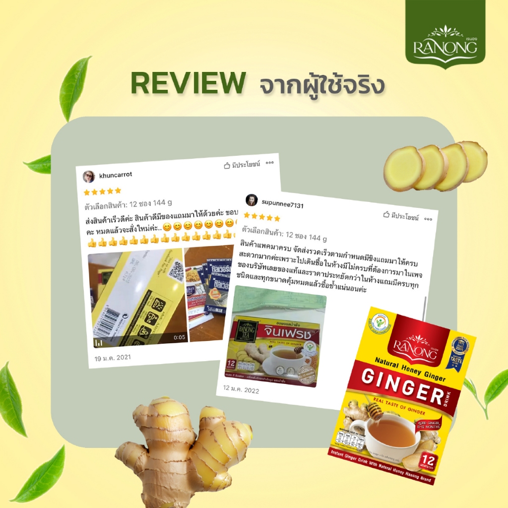 เรนอง ขิงผง รสน้ำผึ้ง [12ซอง] ขิงแก่ธรรมชาติแท้ 100% ขิงผง100% (GHL)