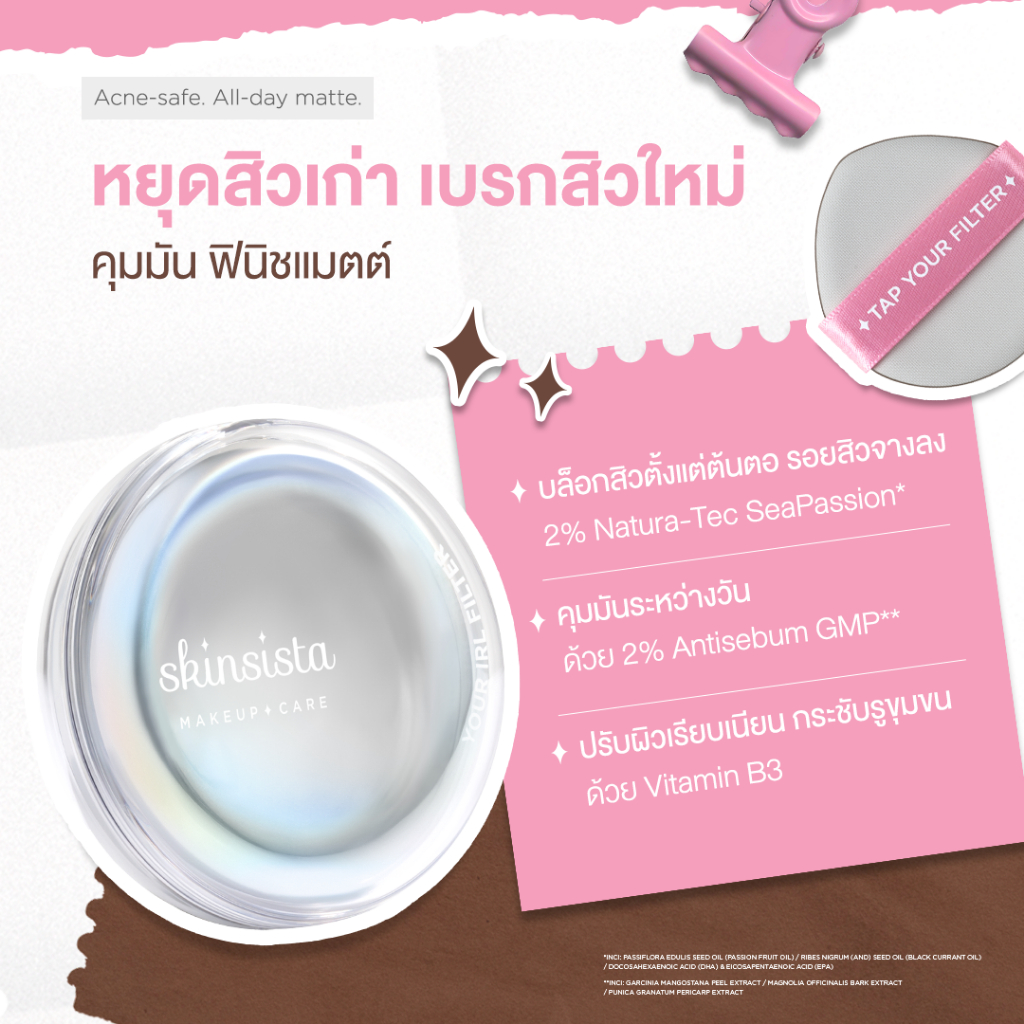Skinsista คุชชั่นตบสิว ปกปิด บำรุง Soft Blurring Matte IRL Filter Cushion SPF30 PA++ 12g.
