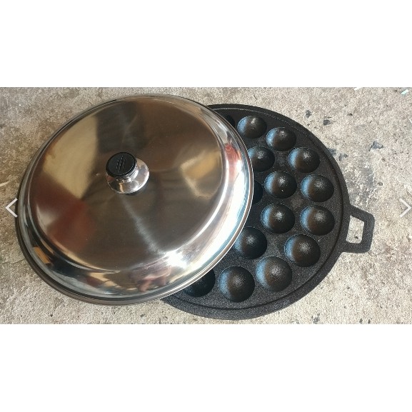 ชุดเตาขนมครก แม่พิมพ์ขนมครกเหล็กหล่อ C30 พร้อมบังลม และฝาสแตนเลส พร้อมใช้งาน