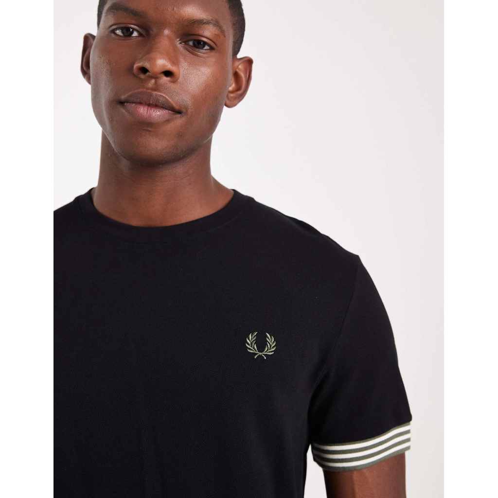 Fred Perry Striped Cuff T-Shirt in Black