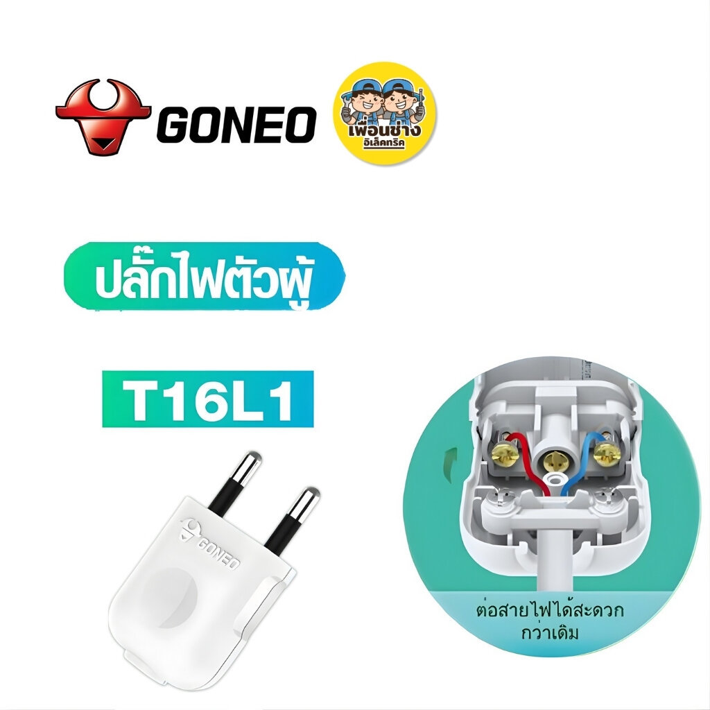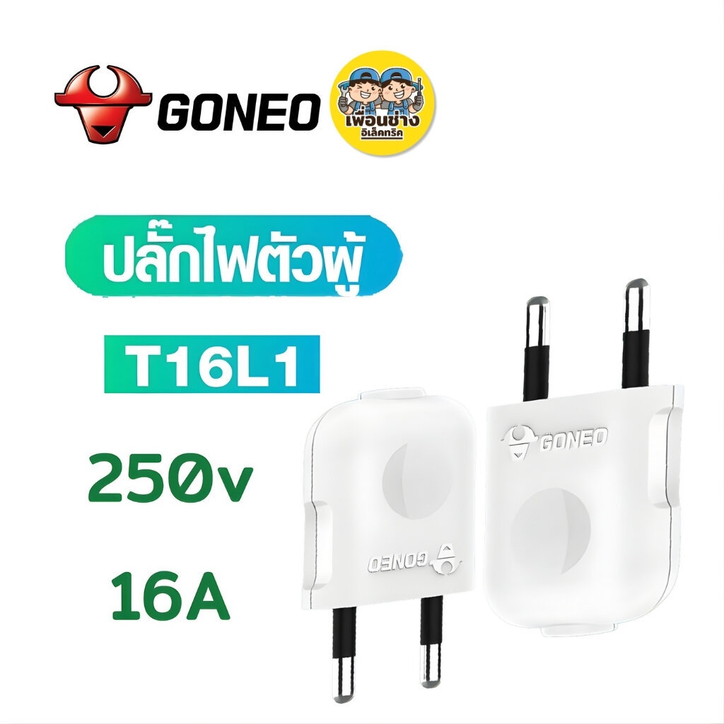 **รุ่น T16L1** GONEO ปลั๊กตัวผู้ 2 ขา EU PLUG โกนีโอ ปลั๊กตัวผู้ 2 ขากลม มีมอก. รองรับ 16A 250V