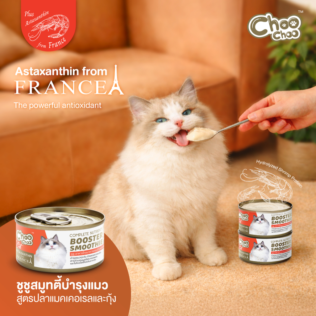 [ส่งฟรี+แถม1กป] ChooChoo ชูชู สมูทตี้บำรุงแมว สูตรแมคเคอเรลกุ้ง ผสมแอสตาแซนธิน 12 กระป๋อง (80กรัมx12กระป๋อง) อาหารแมว