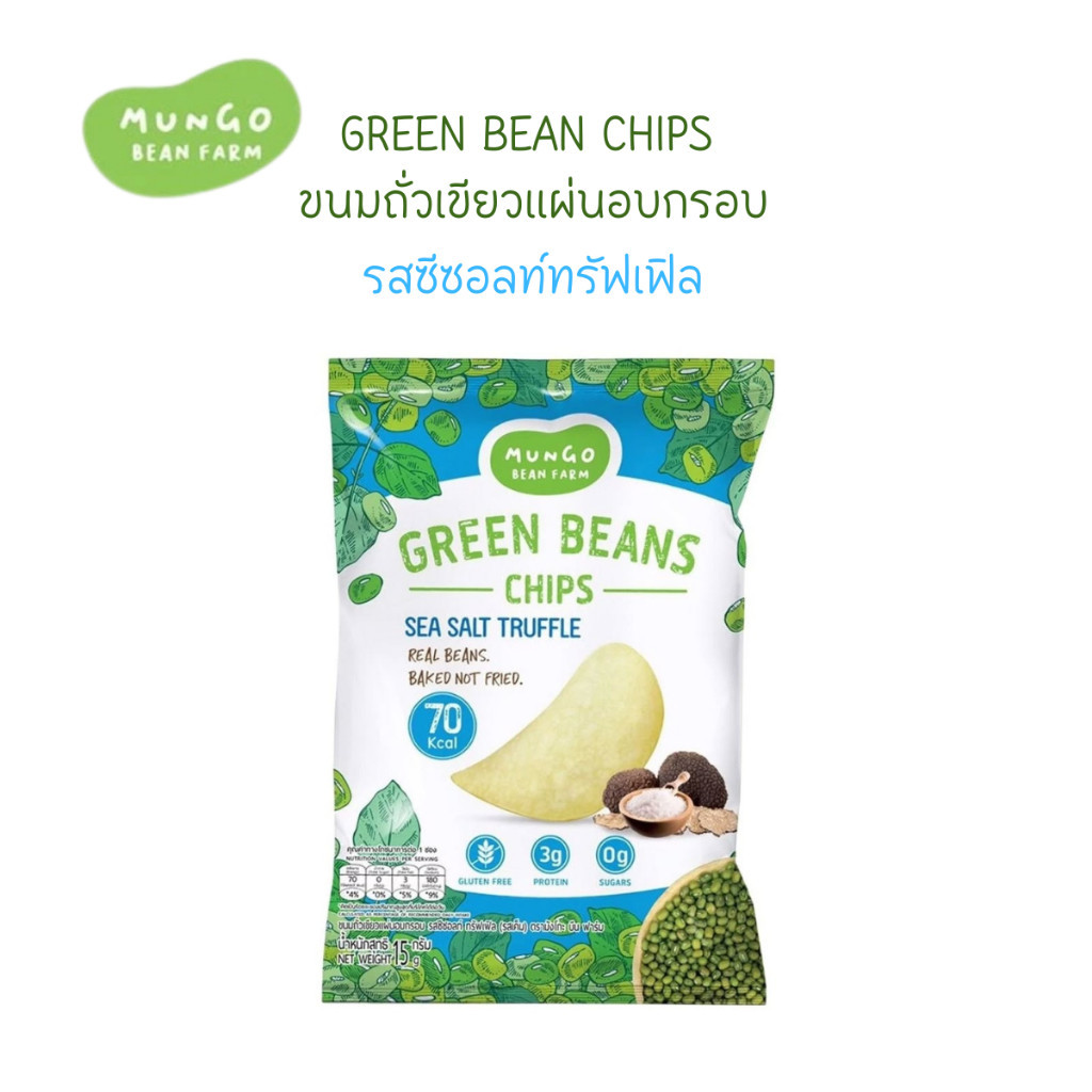 Mungo Bean Farm GREEN BEAN CHIPS ขนมถั่วเขียวแผ่นอบกรอบ โปรตีนสูง 4 กรัม 70 Kcal ขนมคลีน (15g)