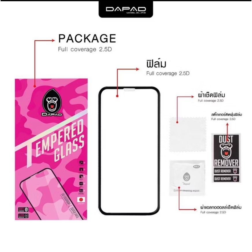 DAPAD ฟิล์มกระจกกันรอย 2.5D FULL COVER รุ่น VIVO V50 LITE V23 V23E V29E V25 V21 V20 SE V19 V17 PRO V15 T1X