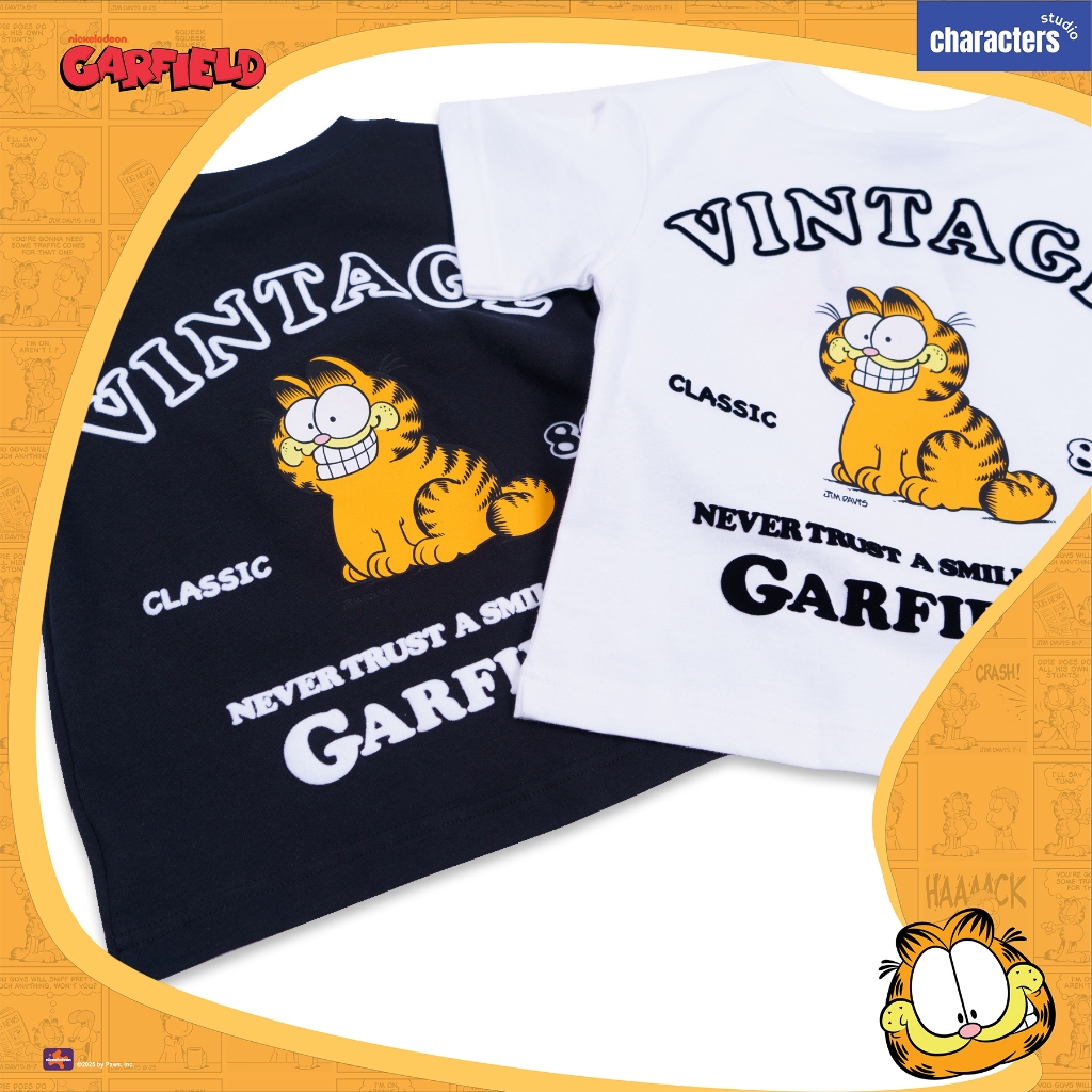 [NEW] Garfield เสื้อยืดเด็กโอเวอร์ไซส์ การ์ฟิลด์วินเทจ ลายพิมพ์เทคนิคกำมะหยี่ ผ้าCotton 100% สินค้าลิขสิทธิ์แท้