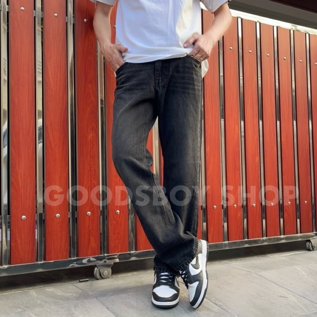HIROCK กางเกงยีนส์ทรงกระบอกกลางผู้ชาย