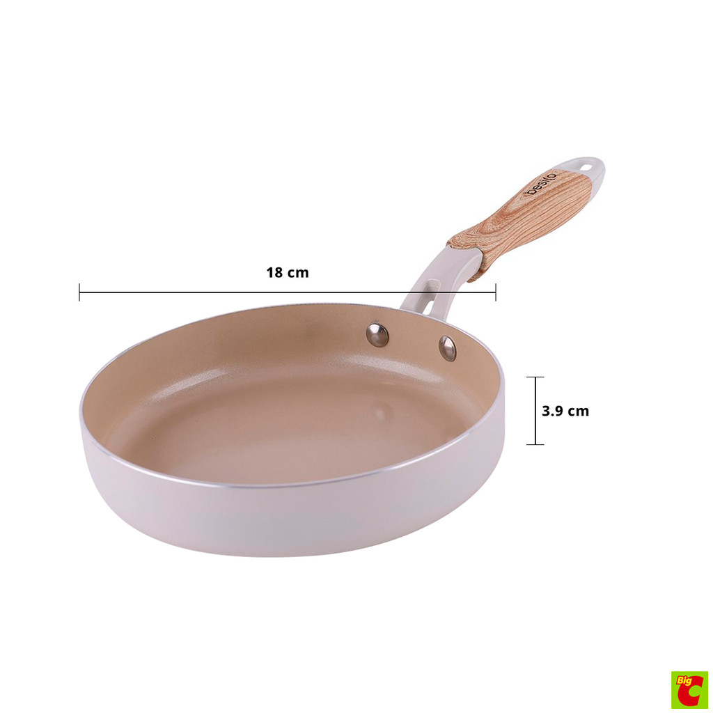เบสิโค กระทะอะลูมิเนียมเคลือบเซรามิก รุ่น T133AK-0118 ขนาดกระทะ 18 ซม. สีครีม