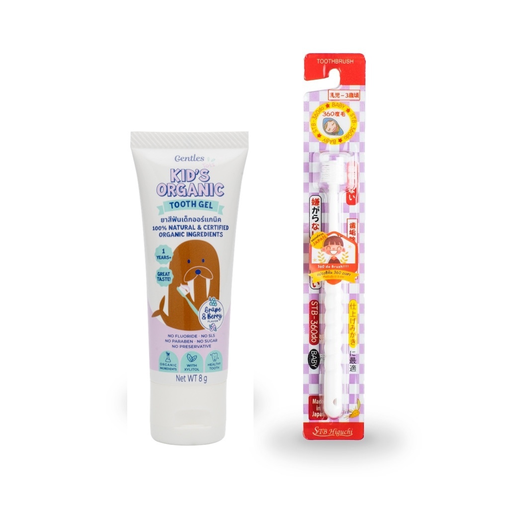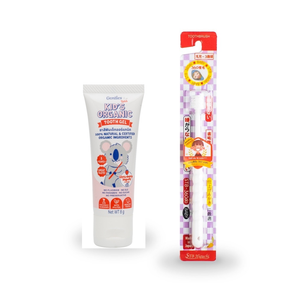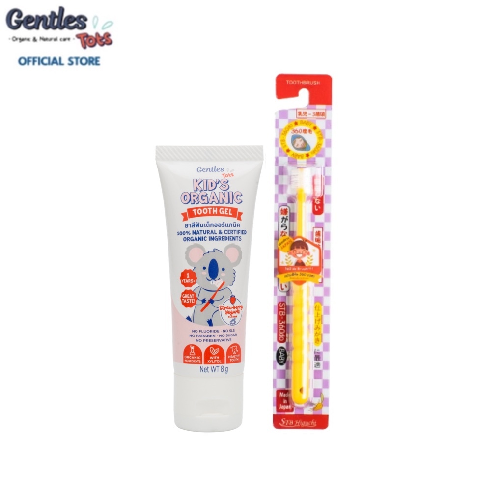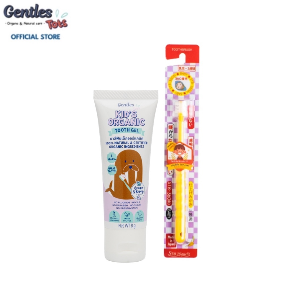 Gentles-tots ชุดฟันเเข็งเเรงสำหรับน้อง 1 ปี+ (ยาสีฟันเด็กสูตร kids ขนาด 8 กรัม + แปรง 360 องศา ขนนุ่ม มี 3 รุ่น)