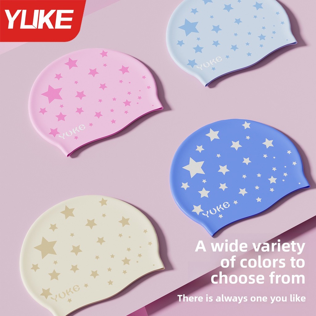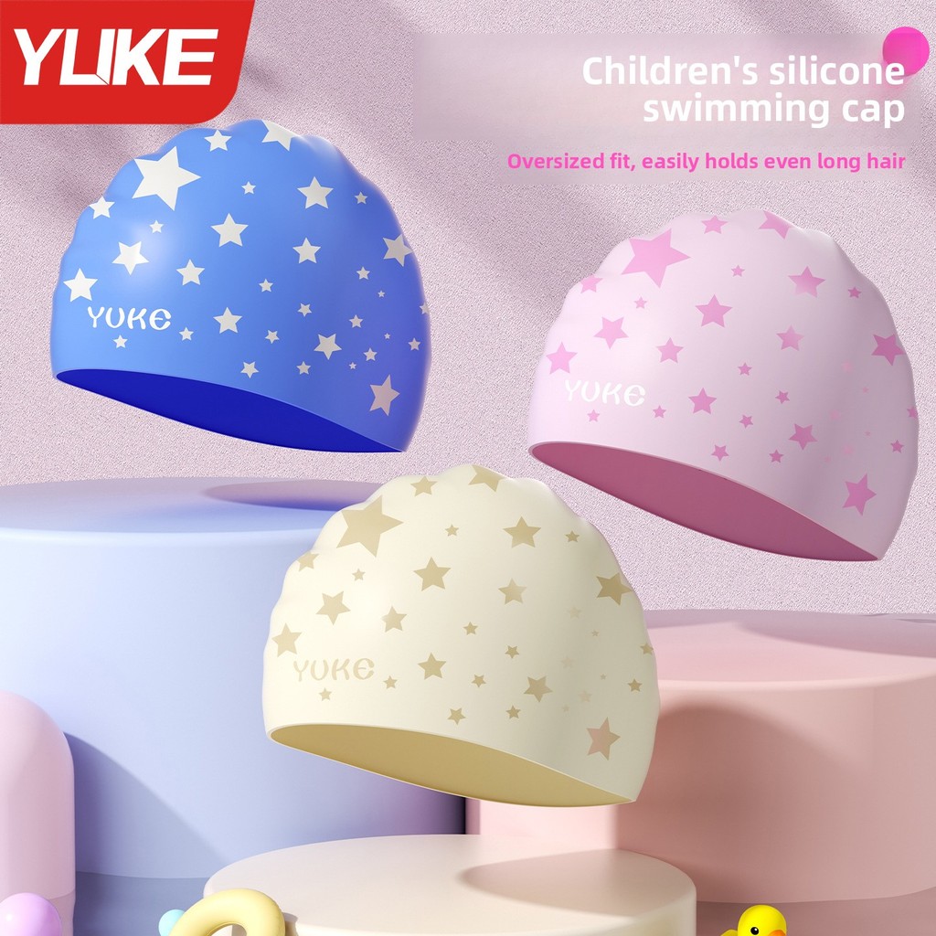 YUKE หมวกว่ายน้ำซิลิโคนสำหรับเด็ก ป้องกันหู กันน้ำ ออกแบบสำหรับผมยาว ใช้ได้ทั้งในสระและน้ำพุร้อน