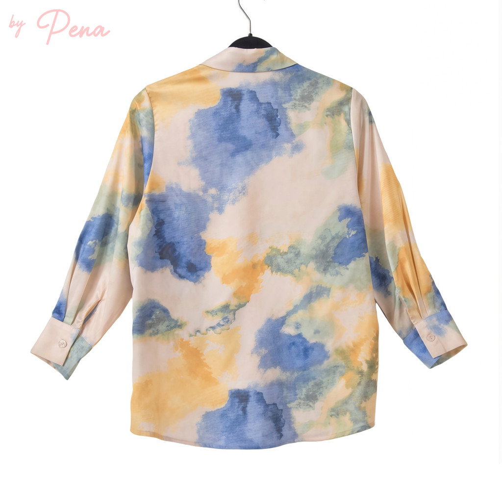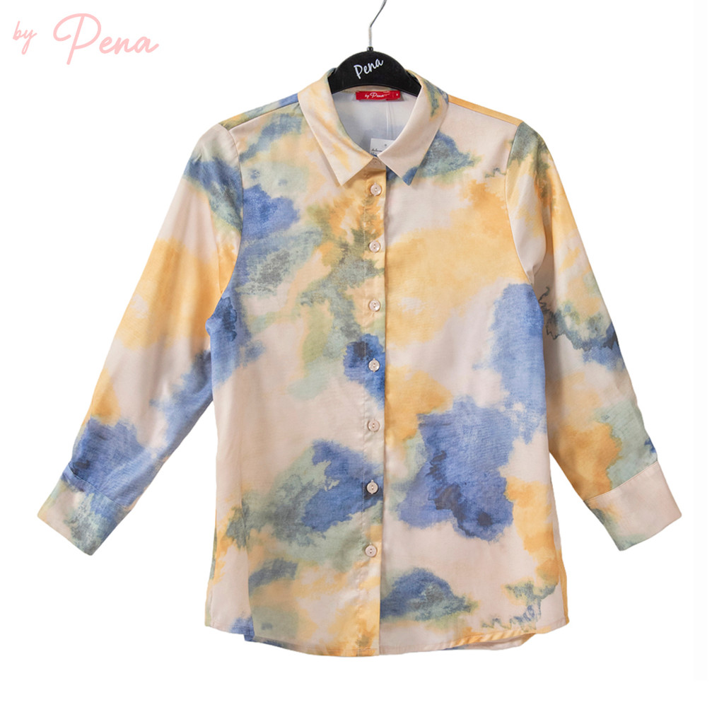 By Pena เสื้อเชิ้ตแขนยาว ลายสีน้ำอาร์ตสไตล์ BPSL032605