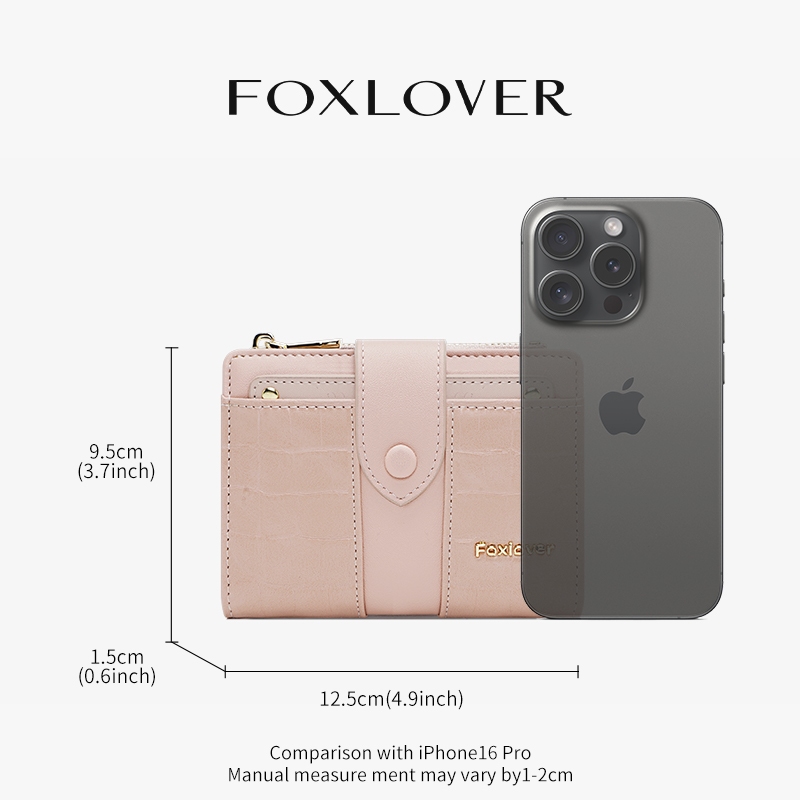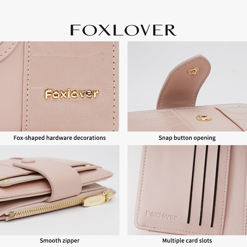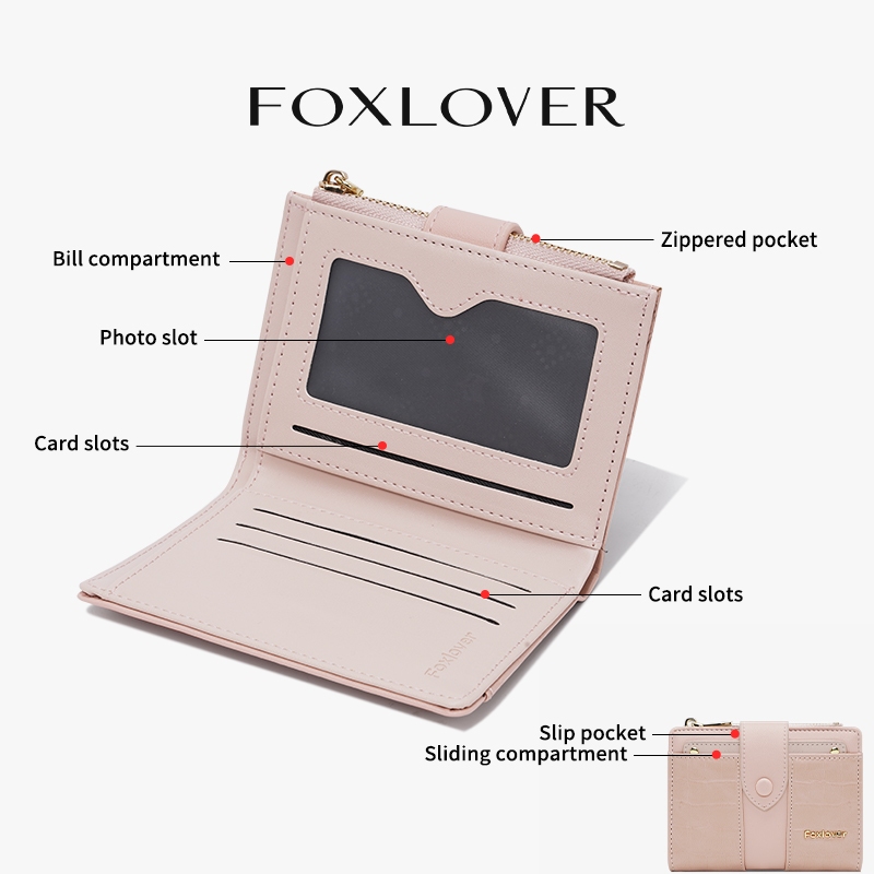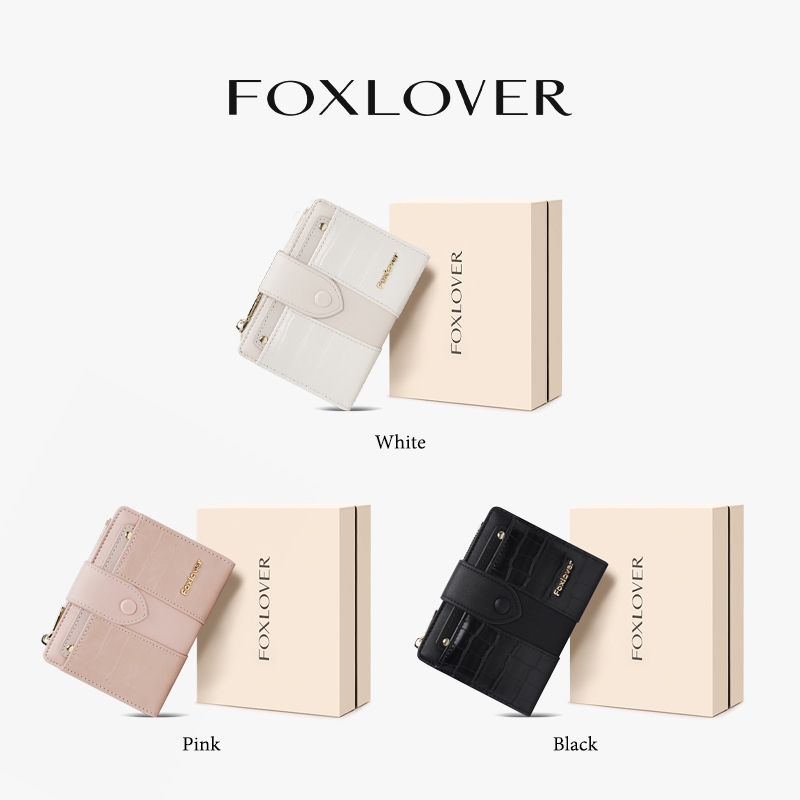 FOXLOVER กระเป๋าสตางค์ผู้หญิง ช่องใส่บัตร 5 ช่อง ขนาดเล็กและทันสมัย สีชมพู สีขาว สีดำ