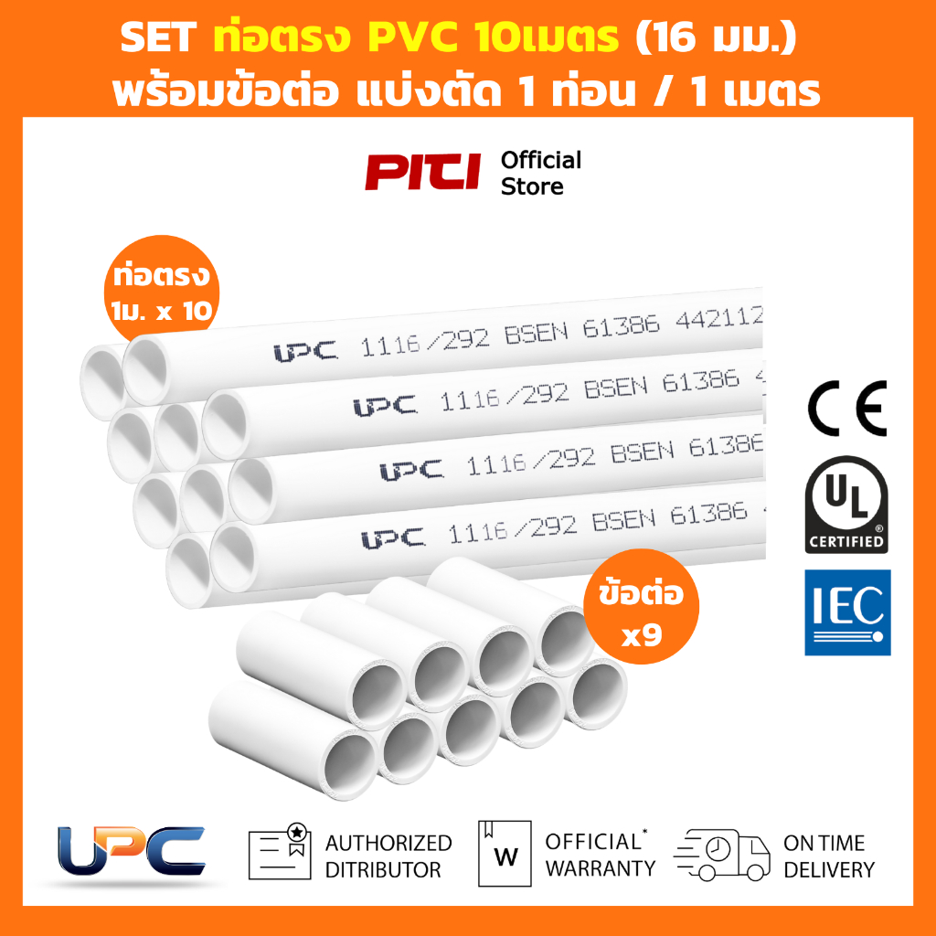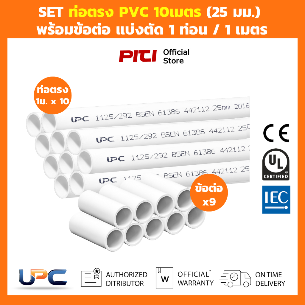 UPC SET ท่อตรงร้อยสายไฟ uPVC 10 เมตร (16 มม. - 25 มม.) พร้อมข้อต่อ สีขาว แบ่งตัด 1 ท่อน / 1 เมตร Conduit