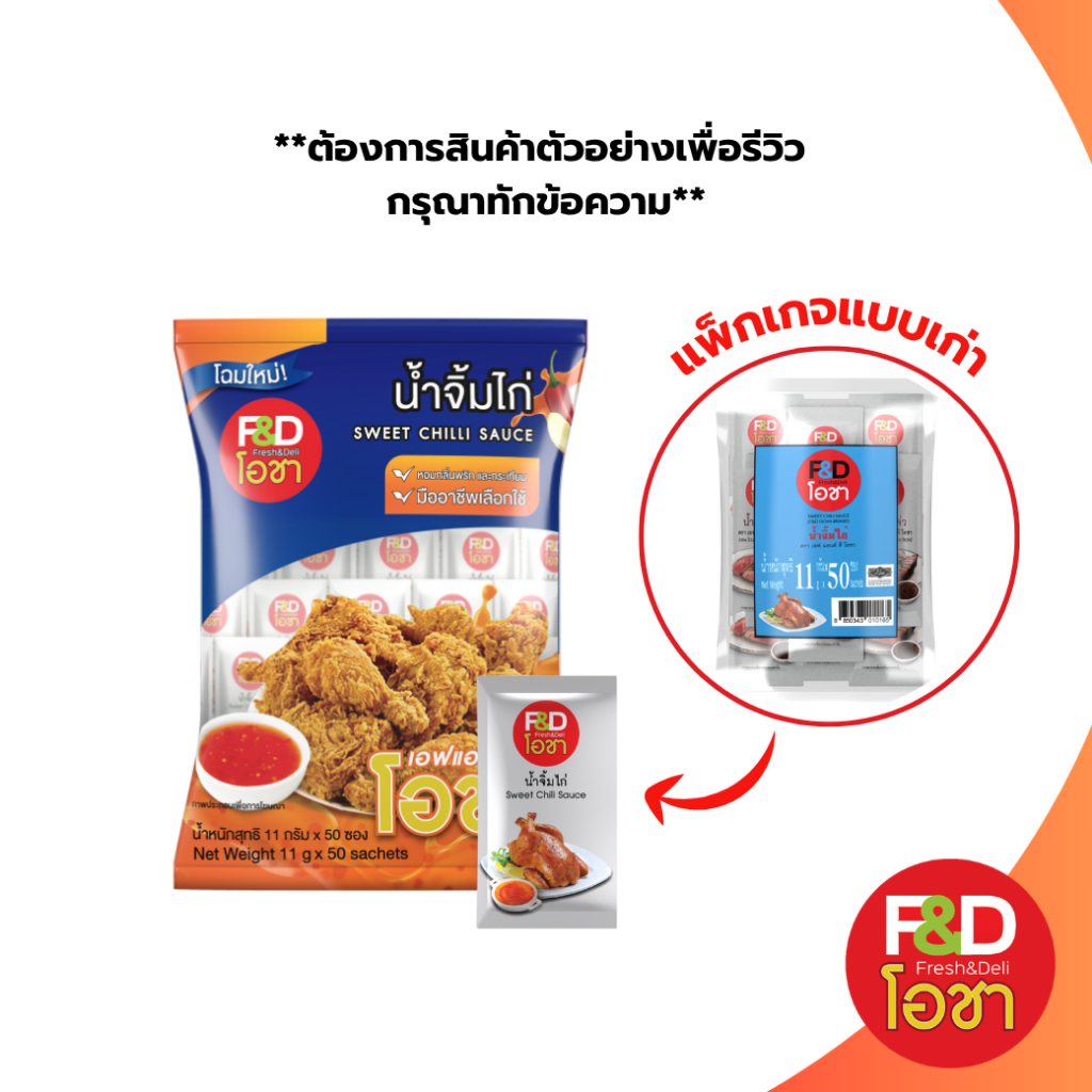 น้ำจิ้มไก่ เอฟแอนด์ดี โอชา ซองเล็ก ขนาด 11 กรัม (50 ซอง/แพ็ค) - F&D Ocha Sweet Chilli Sauce