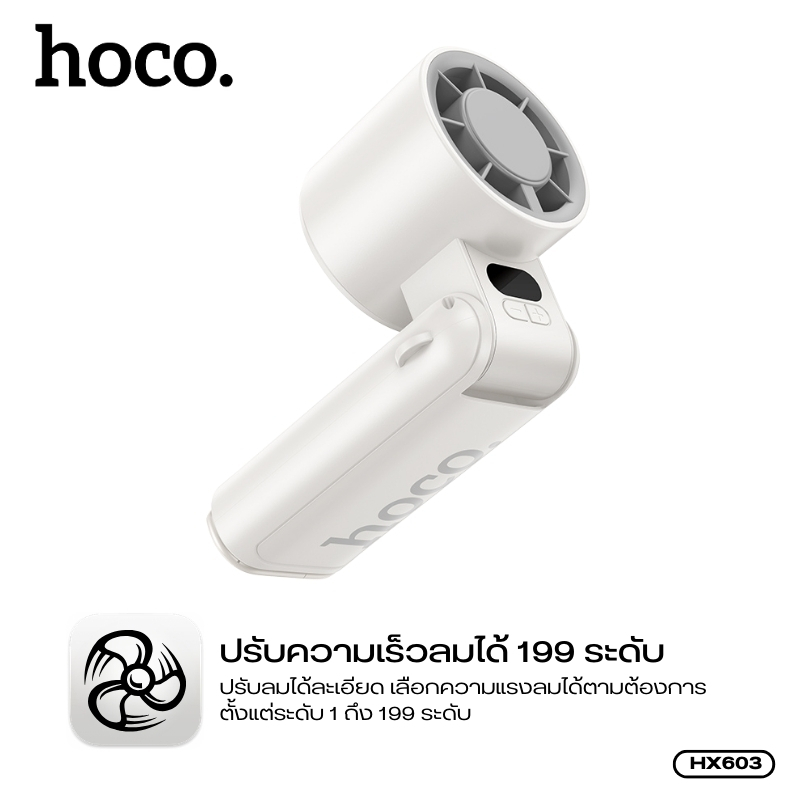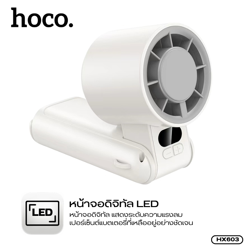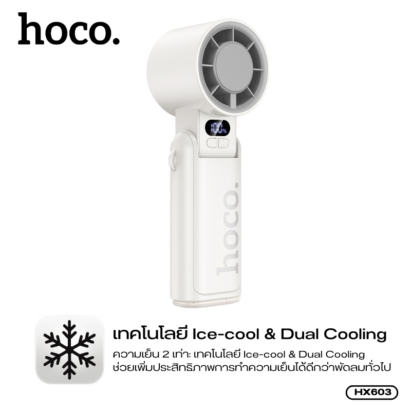 พัดลมไอเย็นพกพา HOCO HX603 ระบบเย็นไว Dual Cooling พับได้ ปรับแรงลม 5 ระดับ เสียงเงียบ ลมแรง แบตอึด 10 ชม.