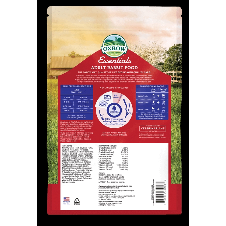 Oxbow Essentials - Adult Rabbit Food อาหารเม็ดสำหรับกระต่ายโต และ แพรี่ด็อก (2.25 Kg.)