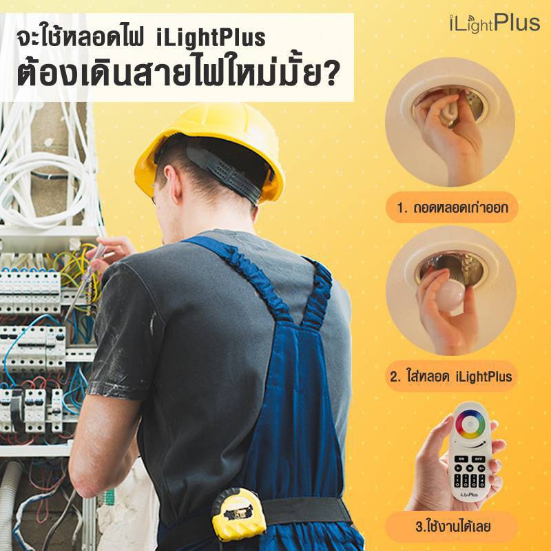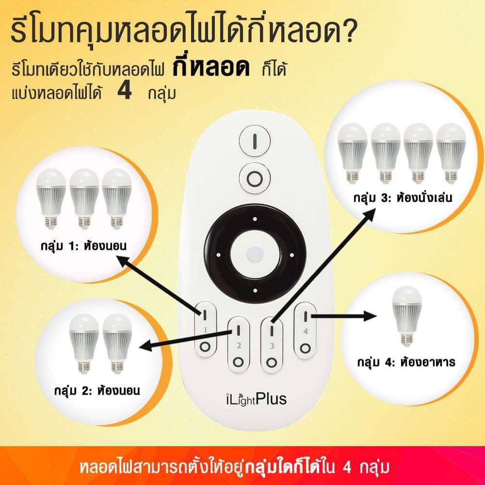 [ส่งไว ใช้นาน มอก.] iLightPlus หลอดไฟ LED รุ่น Lite Warm (6W) 2 หลอดพร้อมรีโมท 1 ตัว - แสงสีเหลืองวอร์มไวท์