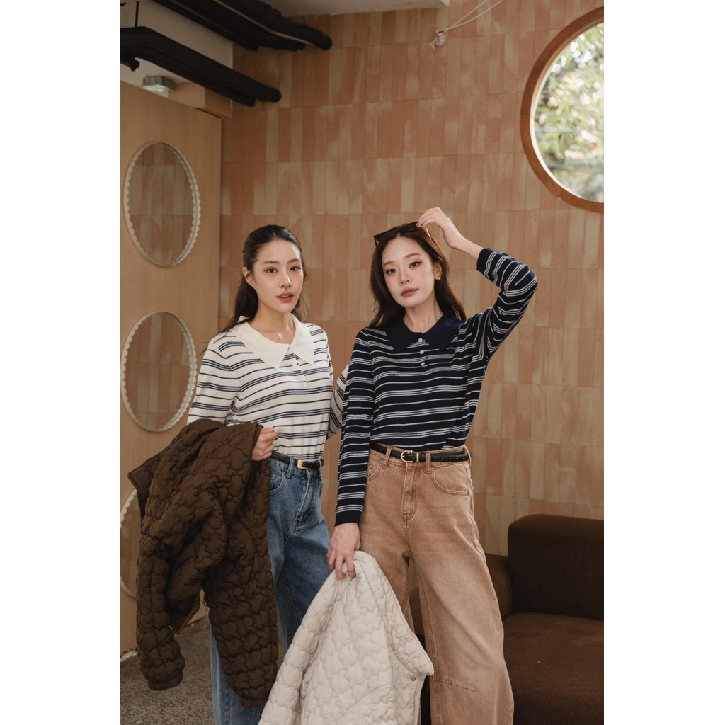 FLASHMARBLE - SARAH POLO SHIRT ผ้าไหมพรมทอบาง เนื้อนุ่ม ไม่คัน ทรงทิ้งตัว