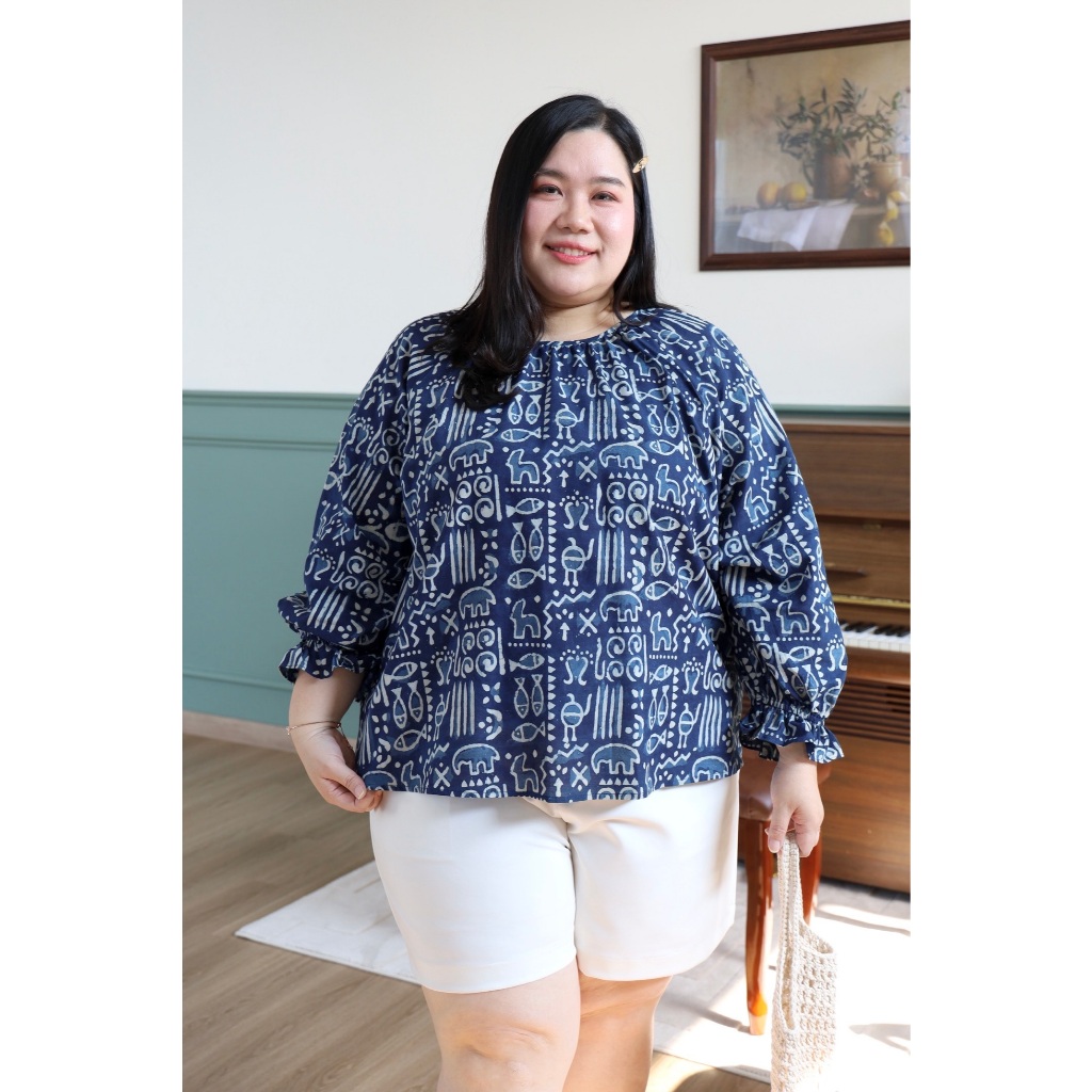 ตัวกว้างพลัสไซส์ เสื้อผ้าอินเดีย คอกลม แขน 4 ส่วน พิมพ์ลาย ลายดอก เสื้อลายดอกสาวอวบ ลายดอกพลัสไซส์ ไซส์ใหญ่ S550-0091