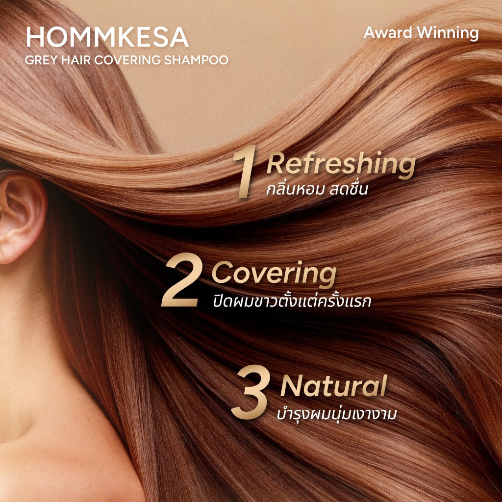 Hommkesa SET แชมพูปิดผมขาว+แชมพูบำรุง+ทรีทเม้นท์ แถมฟรีผ้าขนหนู (2,180บาท)
