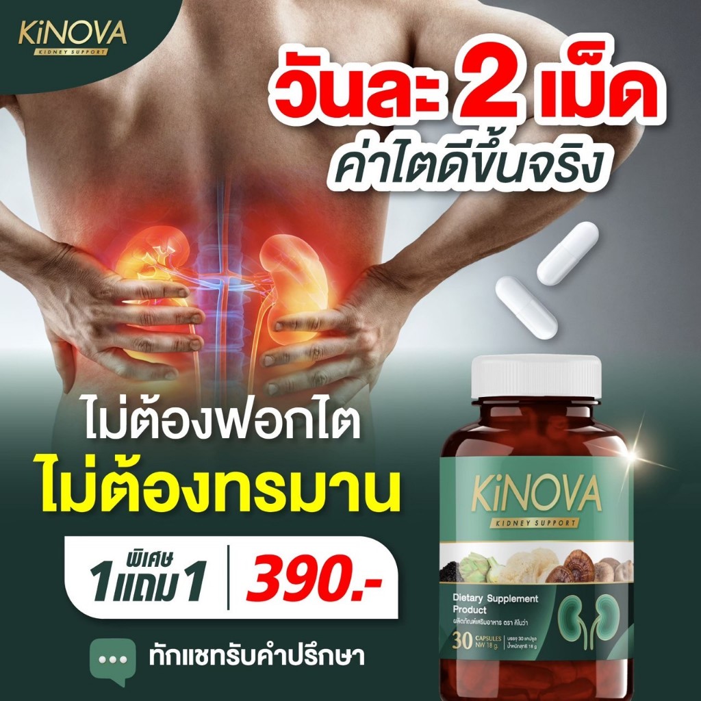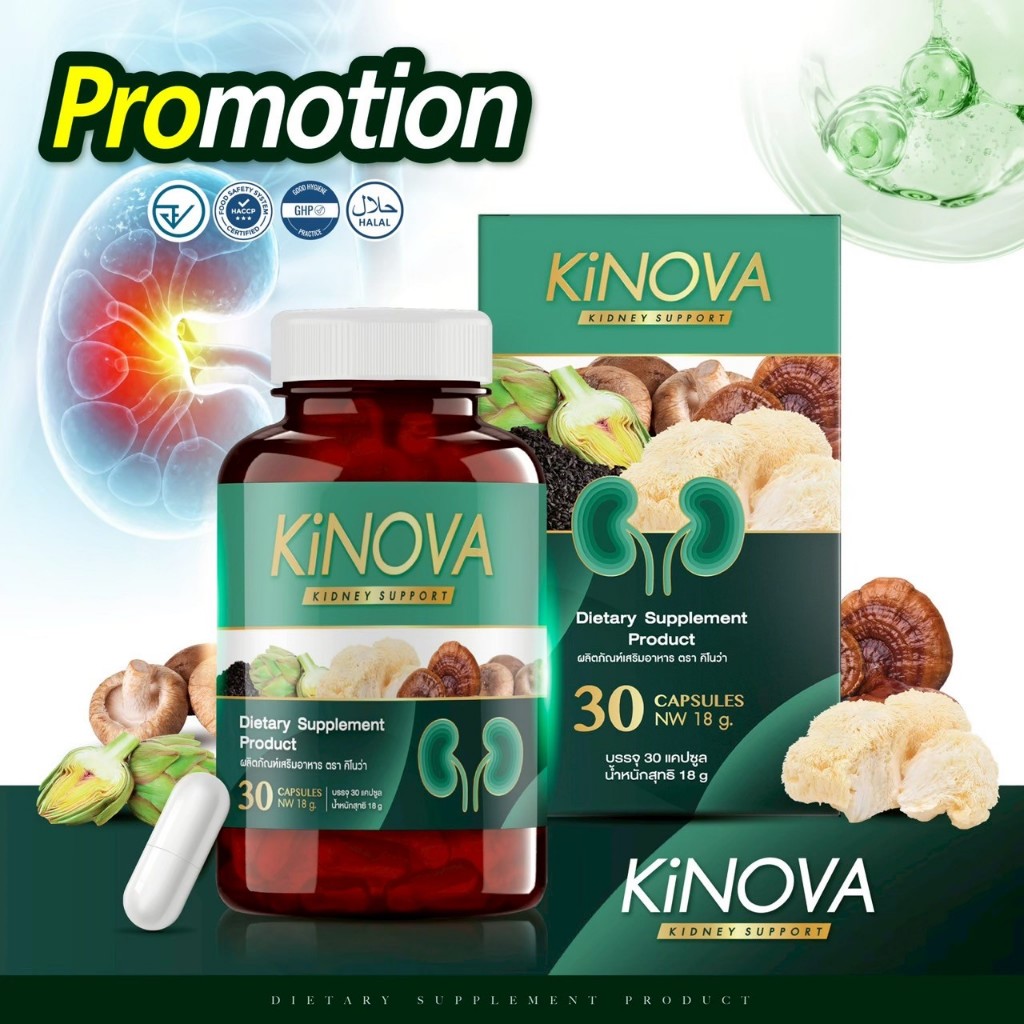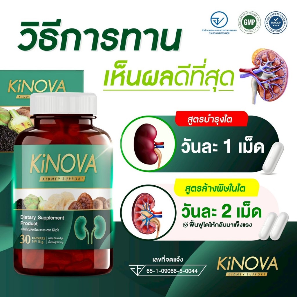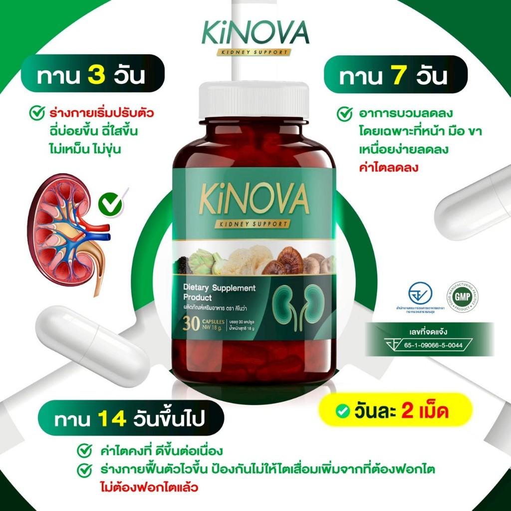 Kinova คิโนว่า 30แคปซูล อาหารเสริมดูแลไต วิตามินสำหรับไต