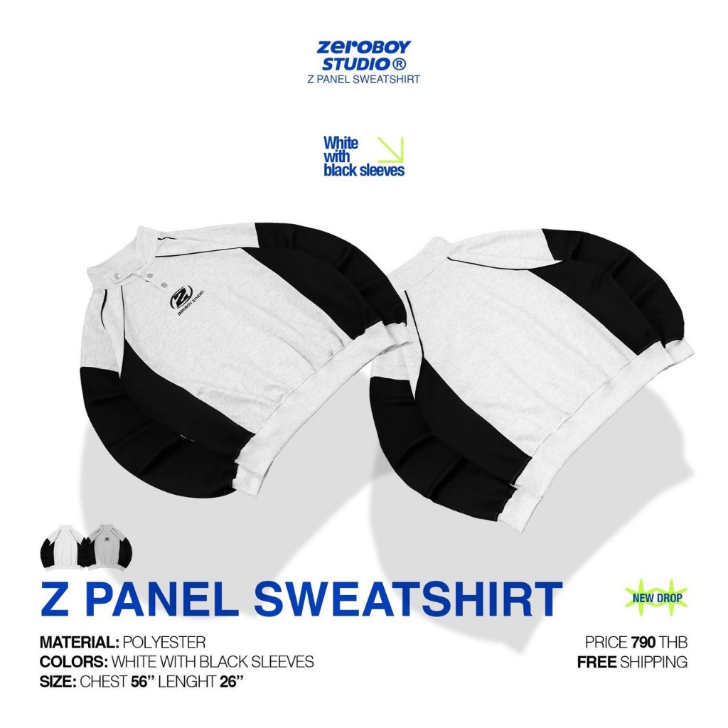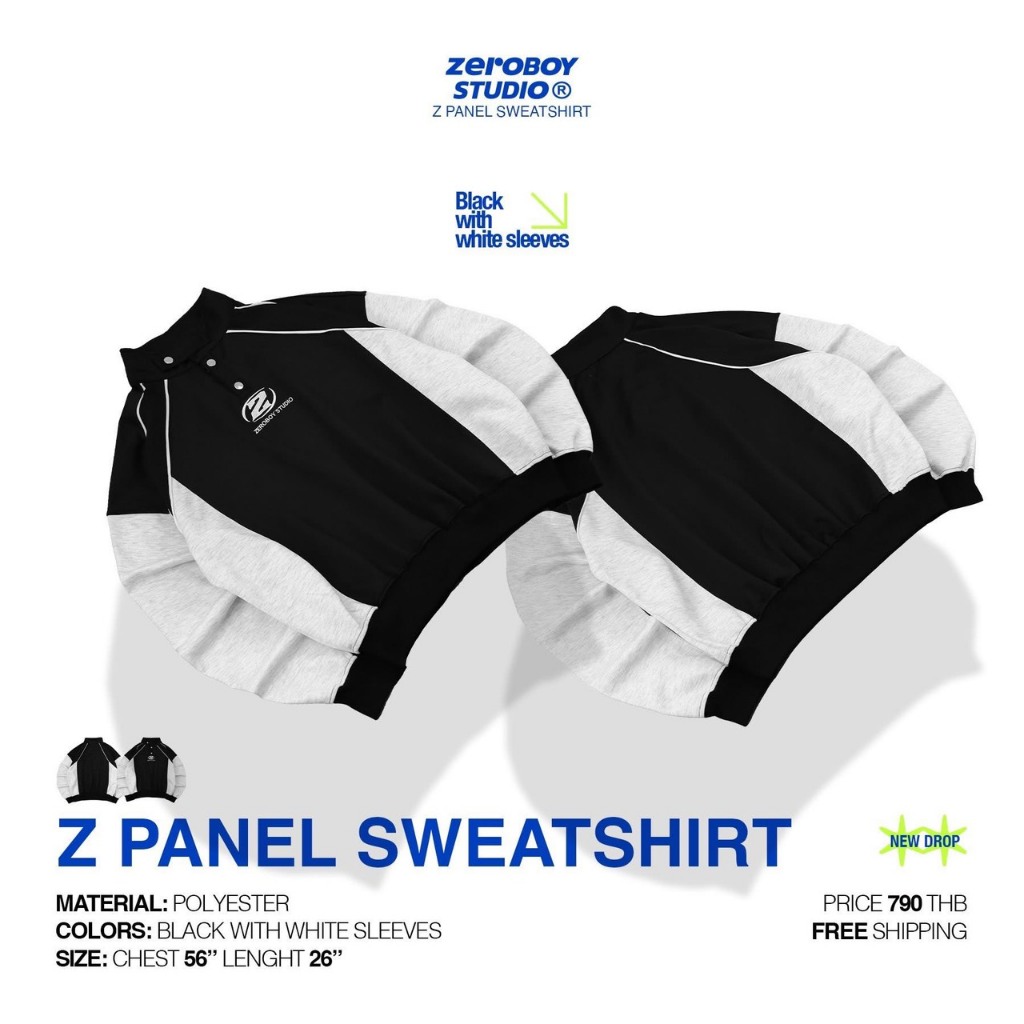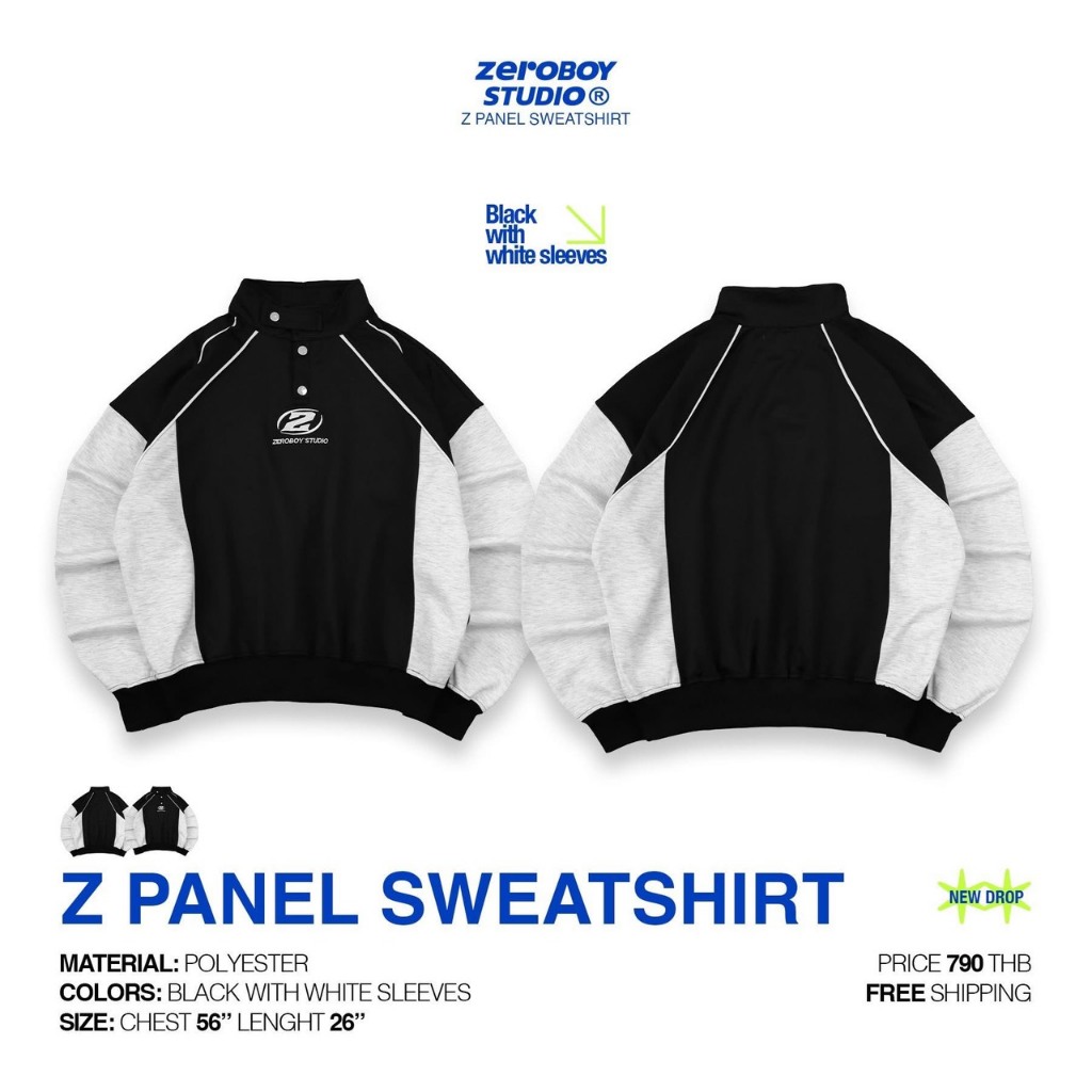 ZER0BOY STUDIO – Z PANEL SWEATSHIRT " สเวตเชิ้ตทูโทนสีดำ&สีเทา "