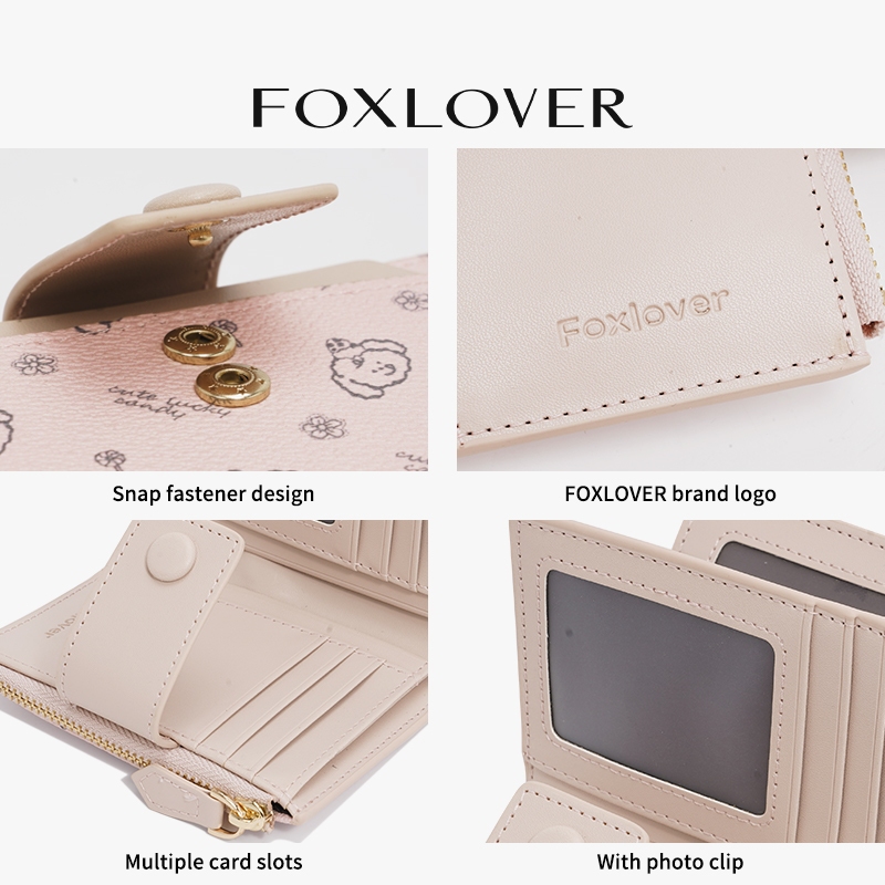 FOXLOVER กระเป๋าสตางค์ผู้หญิง ช่องใส่บัตร 15 ช่อง ลายสุดน่ารัก ทันสมัย สีชมพู สีขาว สีฟ้า
