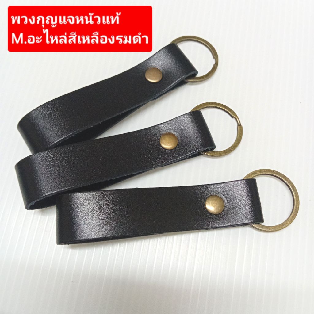 (Mอะไหล่สีเหลืองดำ) พวงกุญแจหนังแท้ handmade หนังวัวแท้ 💢งานตอกหมุด แกะไม่ได้💢