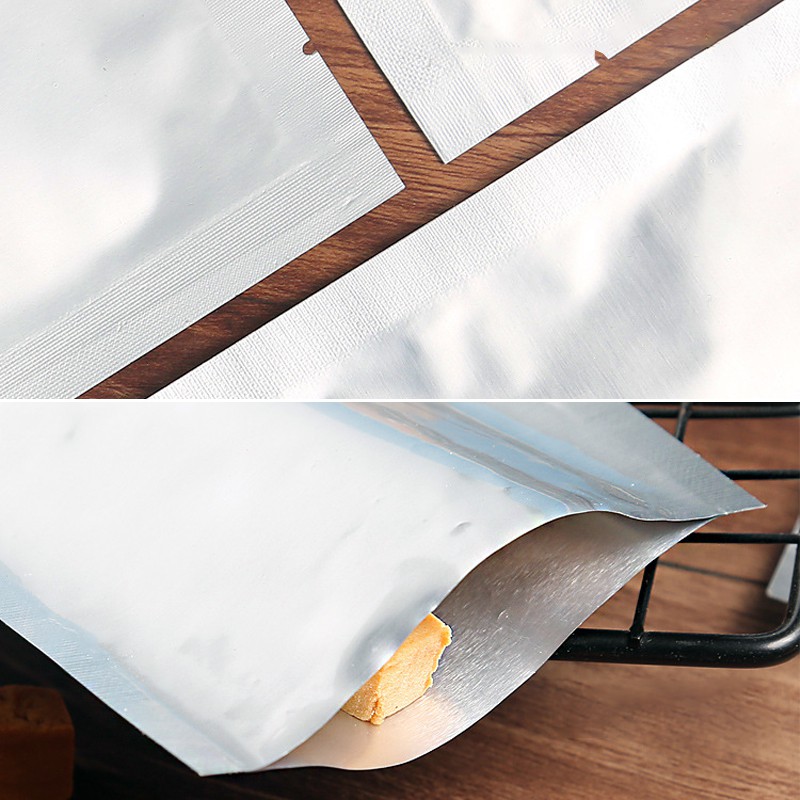 (แพ็ค 100 ใบ) (1/3) ถุงซีลสามด้าน อลูมิเนียม ก้นแบน สีเงินด้าน #P122 ถุงอลูมิเนียมบริสุทธิ์ ป้องกันแสง บรรจุภัณฑ์
