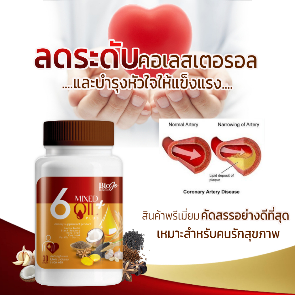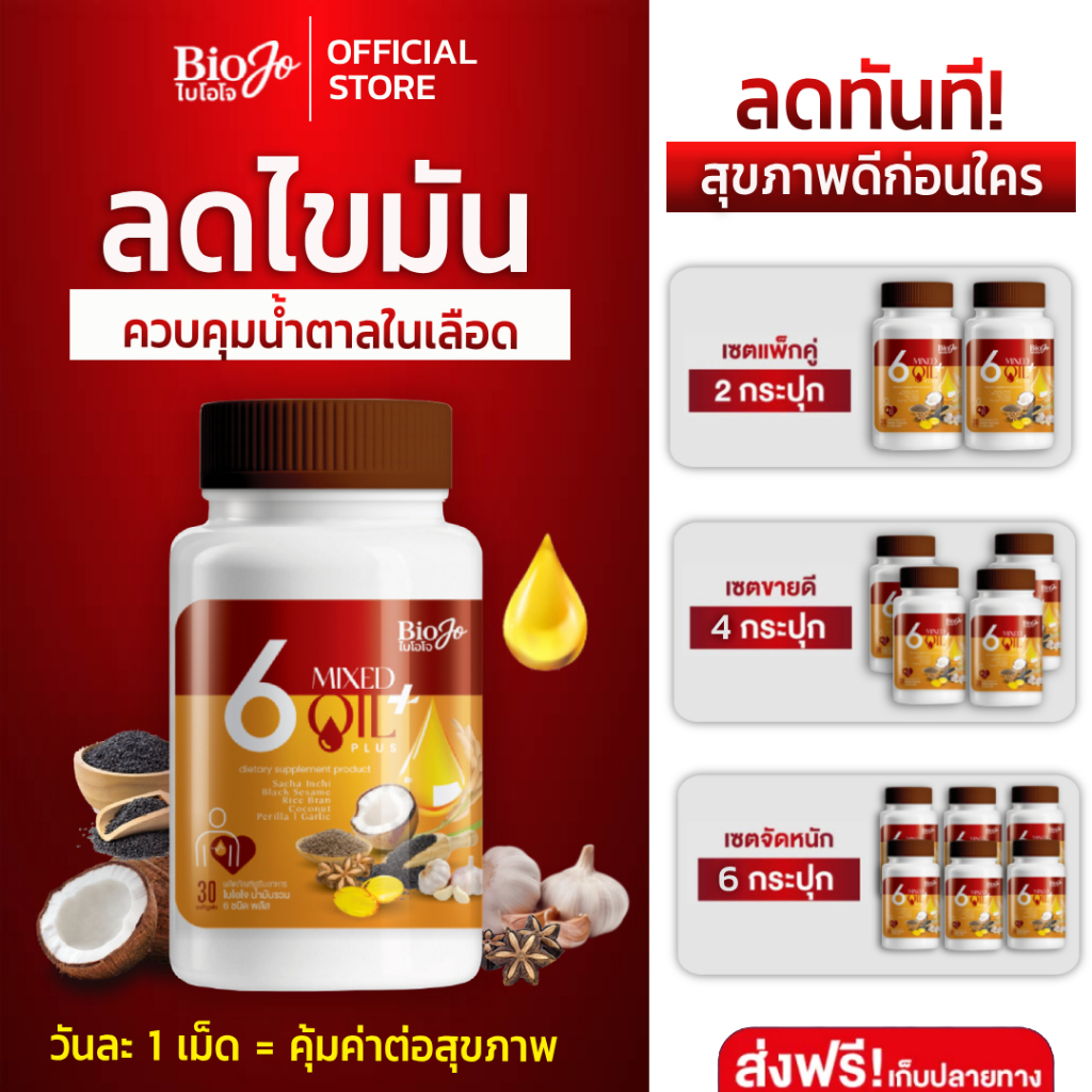 BIOJO น้ำมันรวม 6 ชนิด พลัส { 1 แถม 1 } ปรับลดไขมัน คอเลสเตอรอล ความดันสูง
