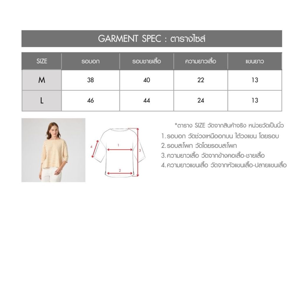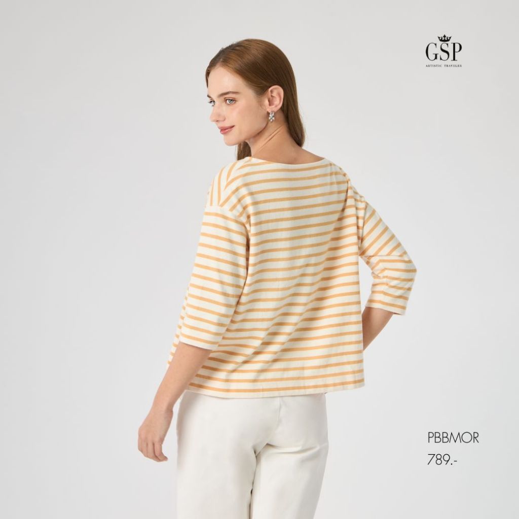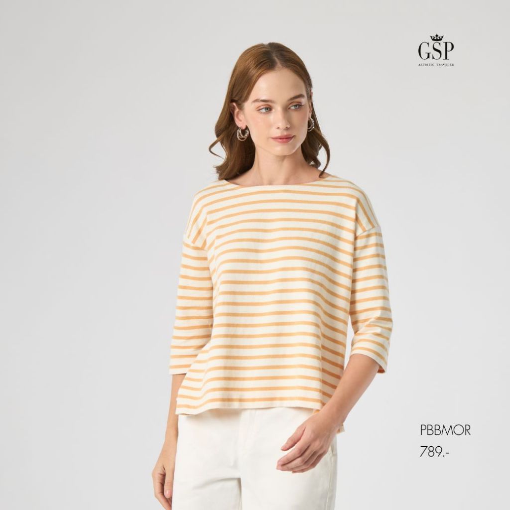 GSP woman's Tee shirt Friendly stripe เสื้อยืดคอกลม แขนยาว สีเบจริ้วขาว PBBMOR