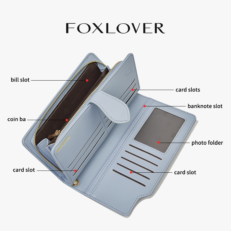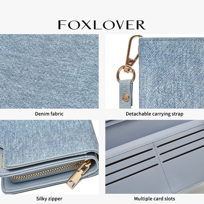 FOXLOVER กระเป๋าสตางค์ผู้หญิง แบบยาว ผ้าเดนิม ช่องใส่การ์ด 10ช่อง กันน้ำ ฟรีกล่องของขวัญ