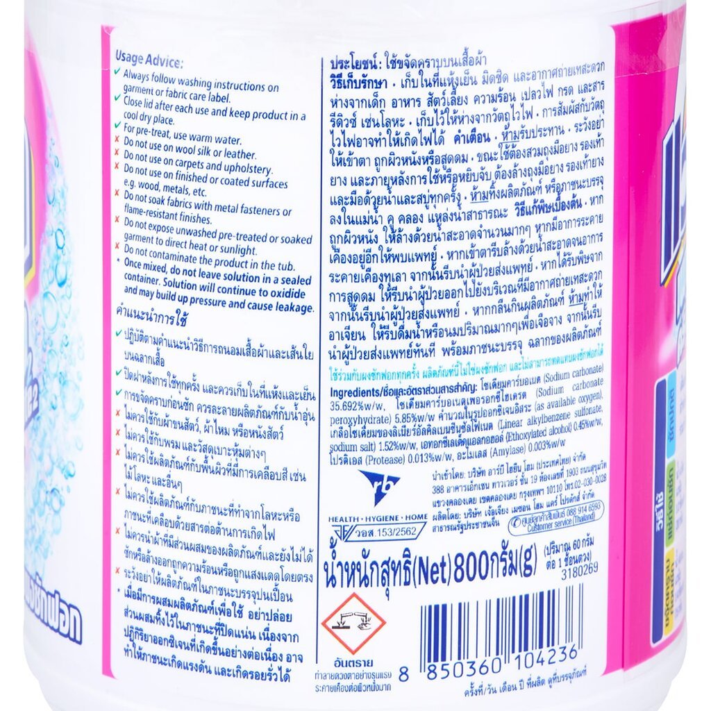 แวนิช คริสตัลไวท์ ผลิตภัณฑ์ขจัดคราบอเนกประสงค์ 800 ก. VANISH Crystal White 800 g.