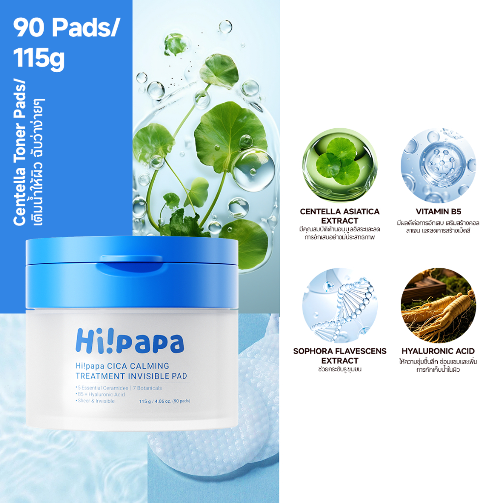 Hi!papa Centella Toner Pads (90 แผ่น) โทนเนอร์แพด Acne & Moist โทนเนอร์แพด บำรุงผิวล้ำลึก สำหรับเด็กและผู้ใหญ่