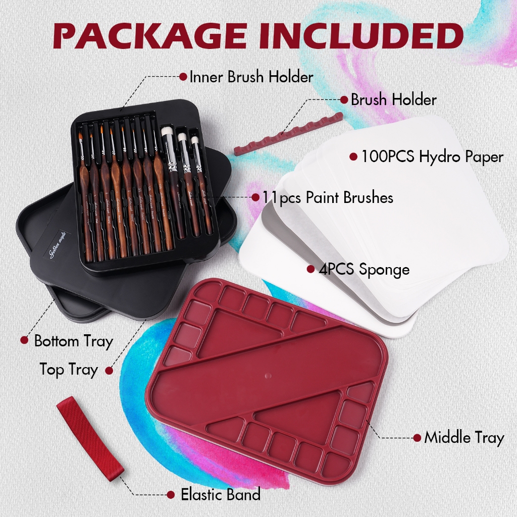 พาเลทเปียกเมเปิ้ลสีทองสําหรับจิตรกรรมขนาดจิ๋ว-2ใน1จานแห้งและเปียกที่มีฝาปิดรวมแปรงทาสีขนาดเล็ก11แผ่น100ชิ้นฟองน้ํา4ชิ้นที่ใส่แปรงสี