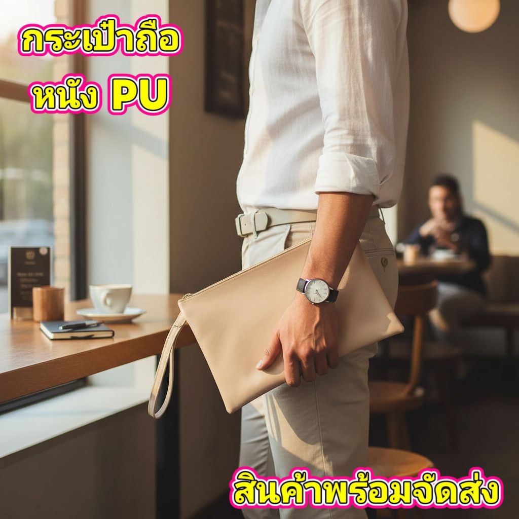 LIN BAG 001 กระเป๋าคลัทช์เรียบ หนังเทียมพรีเมี่ยม กระเป๋าไซส์ A4 ได้ ใช้ได้ทุกวัน ผู้ชาย–ผู้หญิง