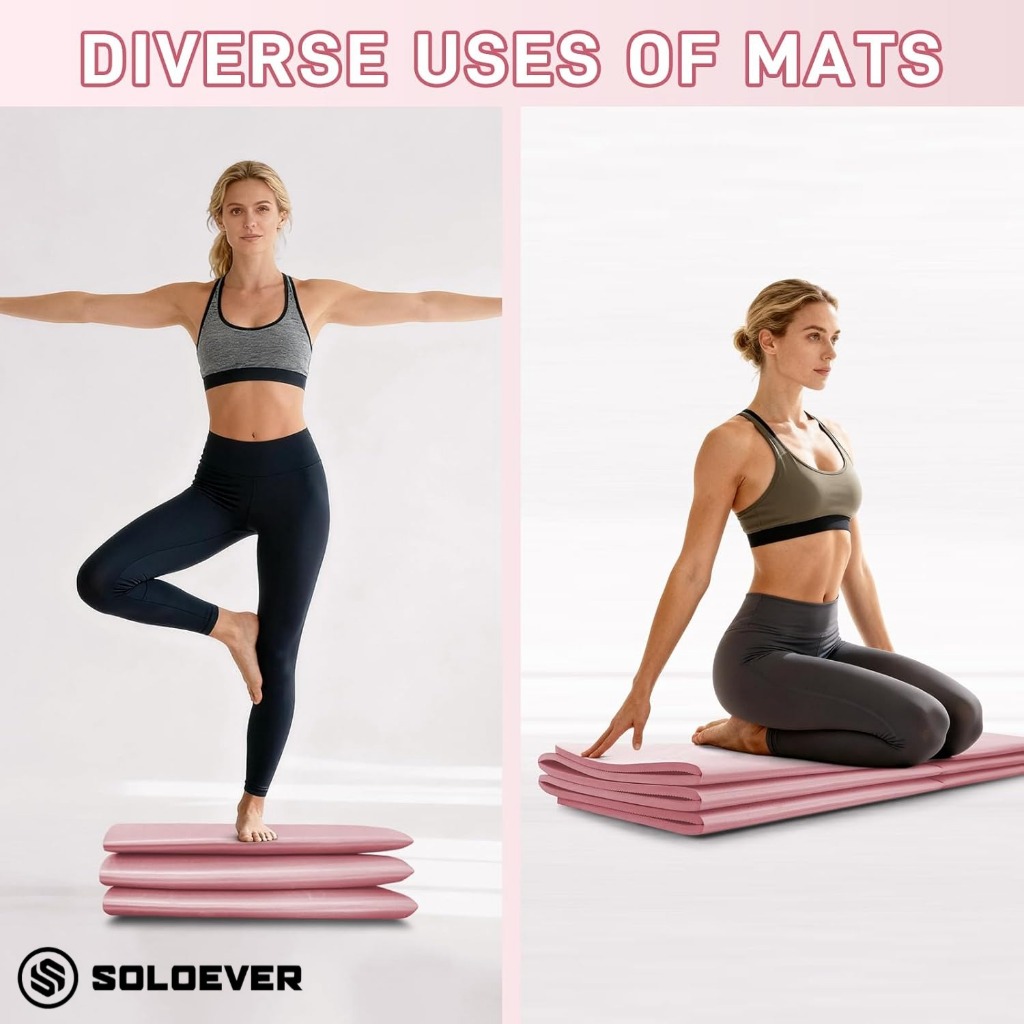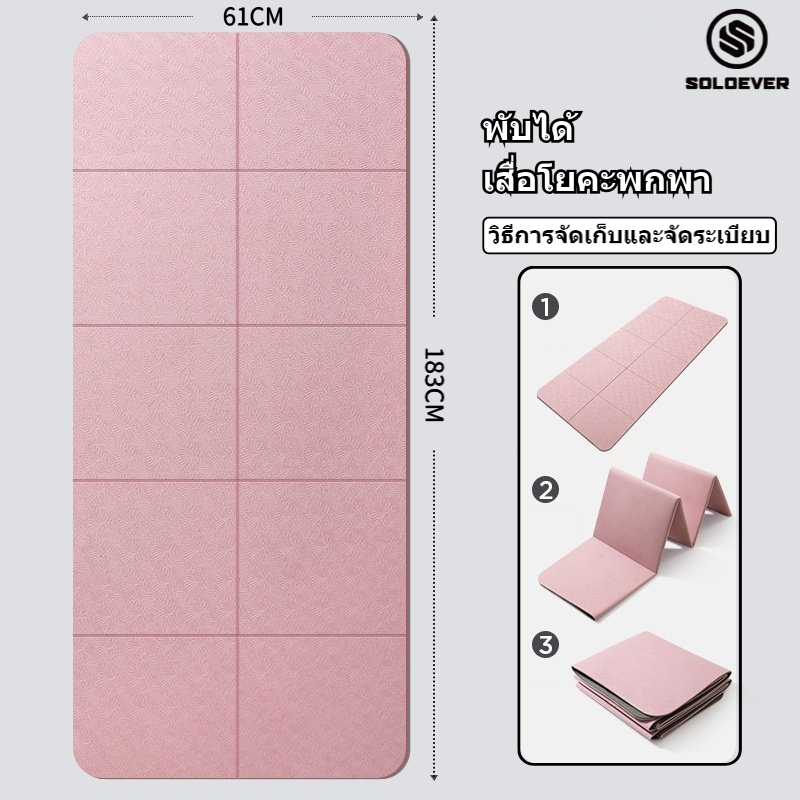 SOLOEVER เสื่อโยคะ พับเก็บได้ ไร้กลิ่น สำหรับออกกำลังกายที่บ้าน คุณภาพสูง กันลื่นและให้ความสะดวกสบาย