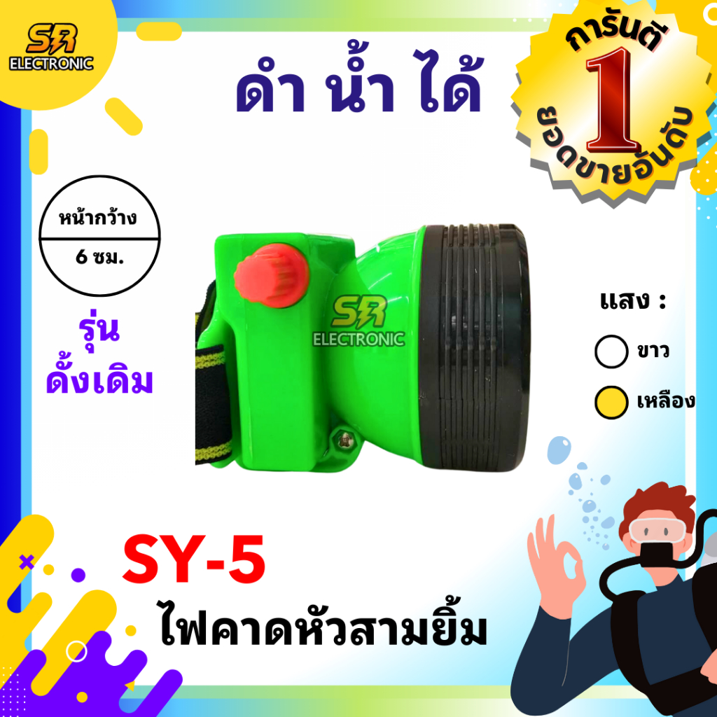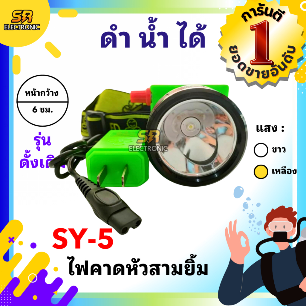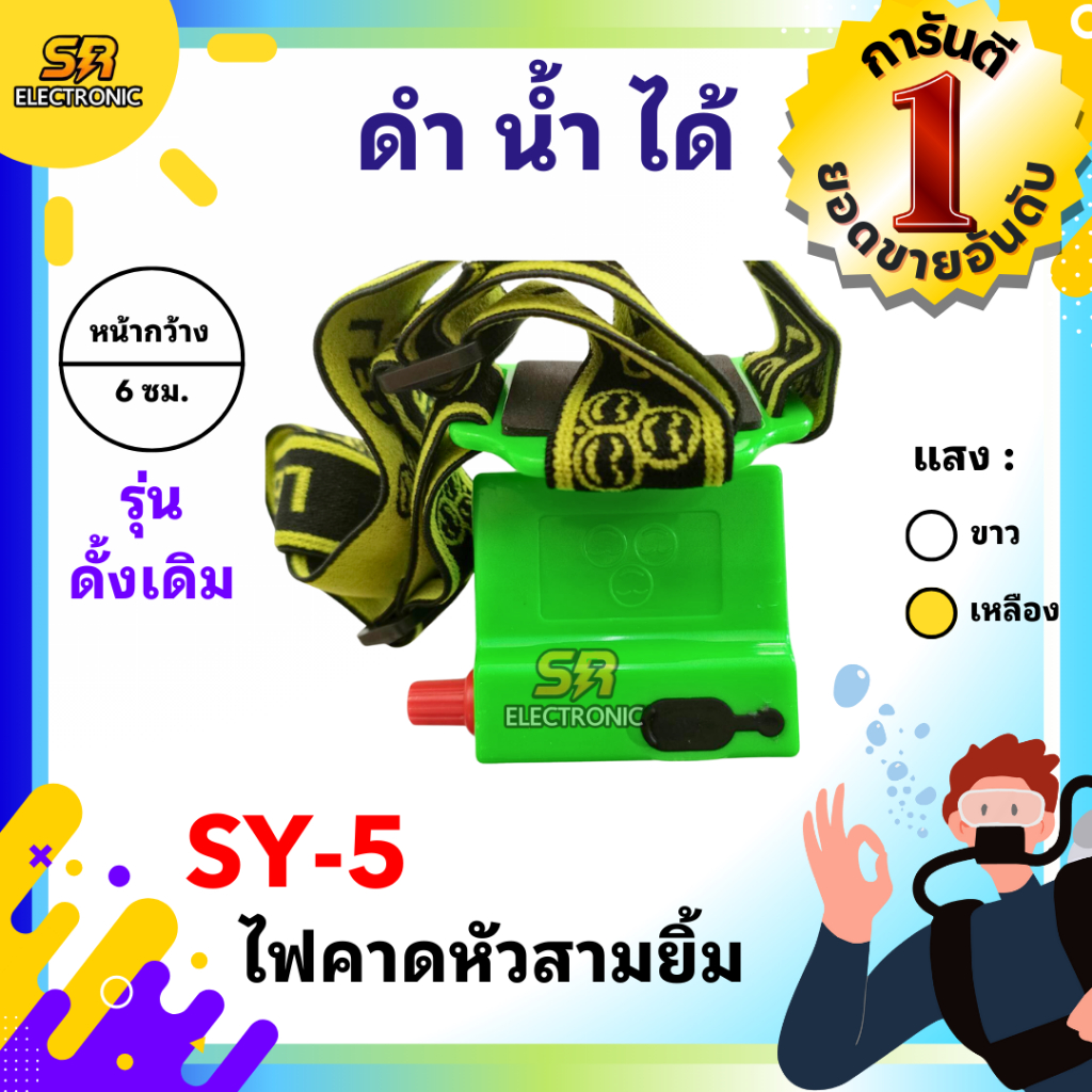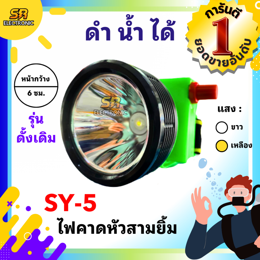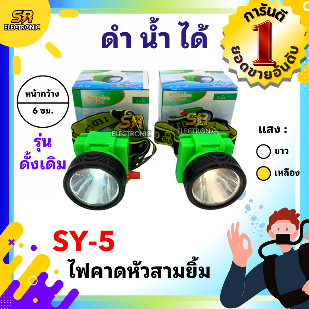 🔥11.11🔥 [ลด15% โค้ด SREL0805L] [ของแท้] ไฟฉายคาดหัวสามยิ้ม รุ่น SY-5🔸หลอดไฟสว่างกว้าง ทนทาน กันน้ำได้ ไฟตัดยาง
