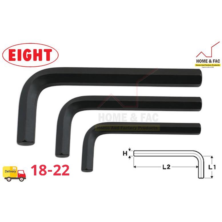 Eight ประแจหกเหลี่ยม หกเหลี่ยม สั้น สีดำ ขนาด 18 - 22 มม.