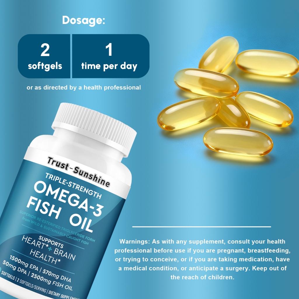 trust-sunshine omega 3 Fish oil softgel ความบริสุทธิ์สูง EPA,DHA,DPA อาหารเสริมสุขภาพหัวใจสมอง