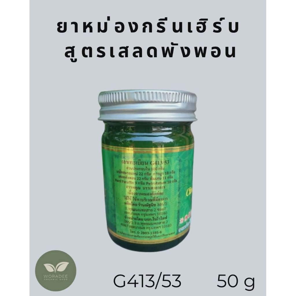 ยาหม่องสมุนไพรตรากรีนเฮิร์บ (Green Herb) สูตรเสลดพังพอน ขนาด 50 กรัม