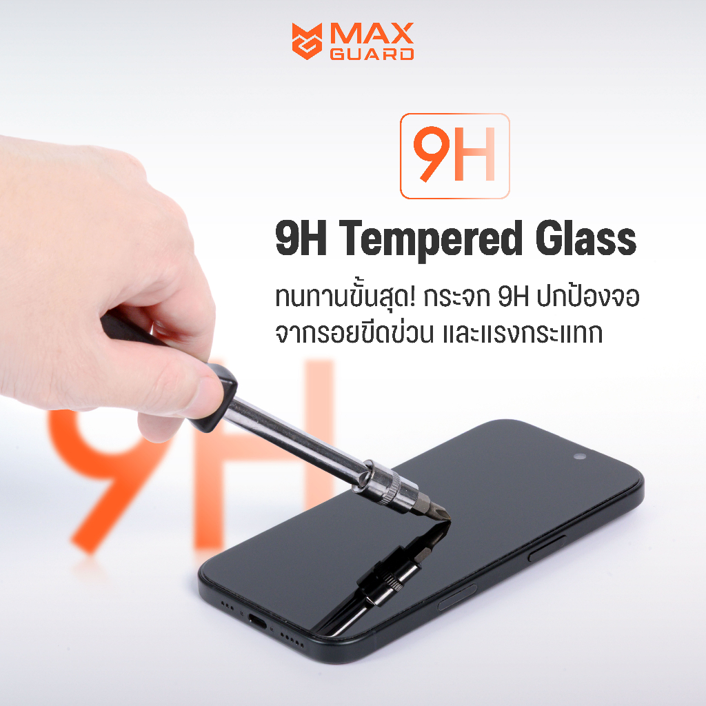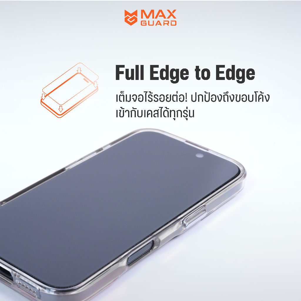 Max Guard ฟิล์มกระจกกันรอย iPhone 16 ทุกรุ่น ขอบบางเต็มจอ รับประกันตลอดอายุการใช้งาน
