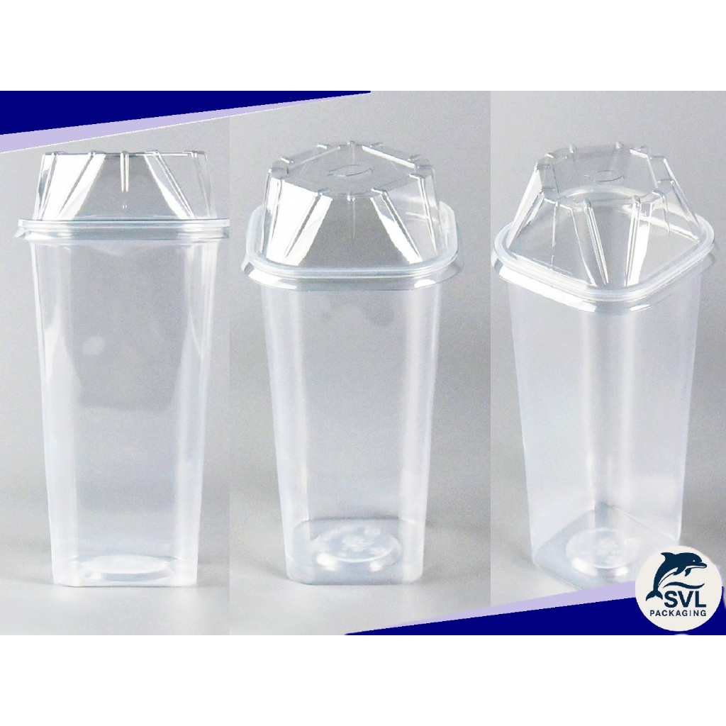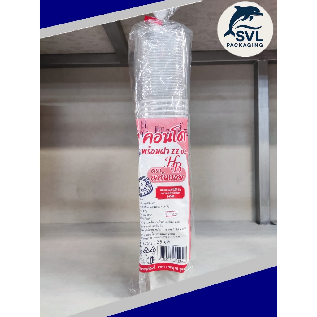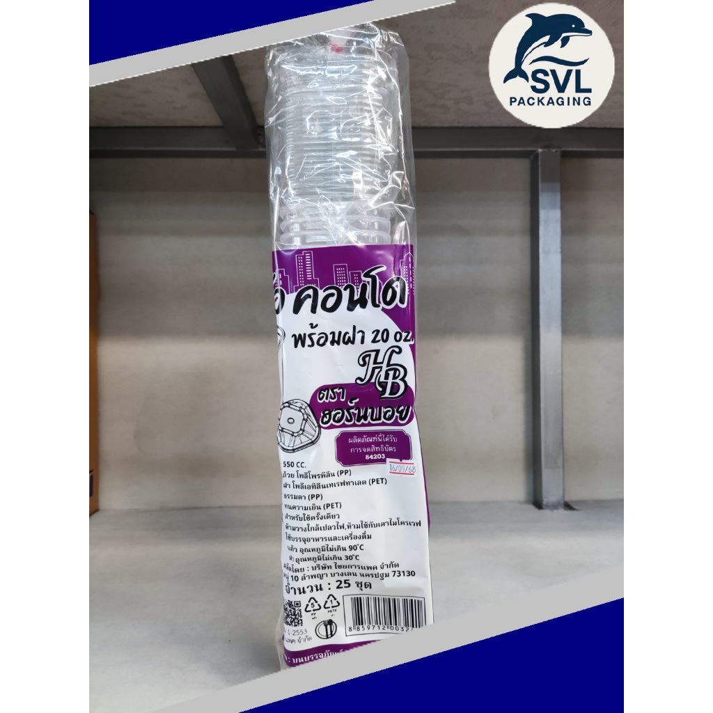 แก้วคอนโด 20,22 ออนซ์ PP แก้วสี่เหลี่ยม พร้อมฝาPETเจาะรู HB บรรจุ 25 ชุด/แถว