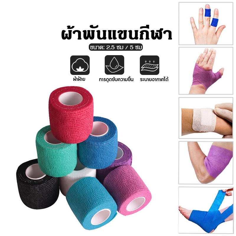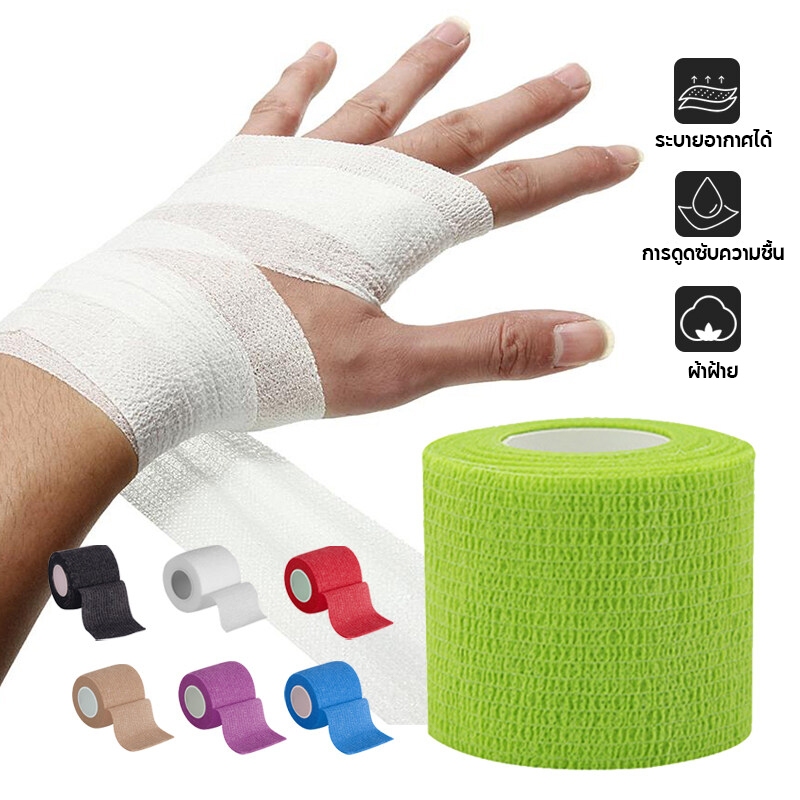 10pcs ผ้าล็อค ผ้าพันแผล เทปพันแผลแบบยืดหยุ่น เทปพันออกกำลังกาย ขนาด 2นิ้ว ยาว 4.5เมตร