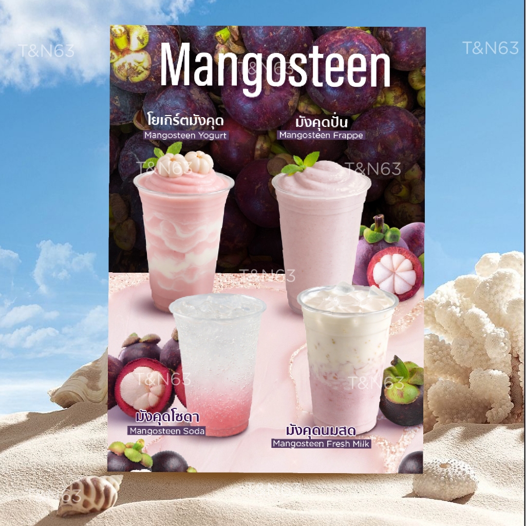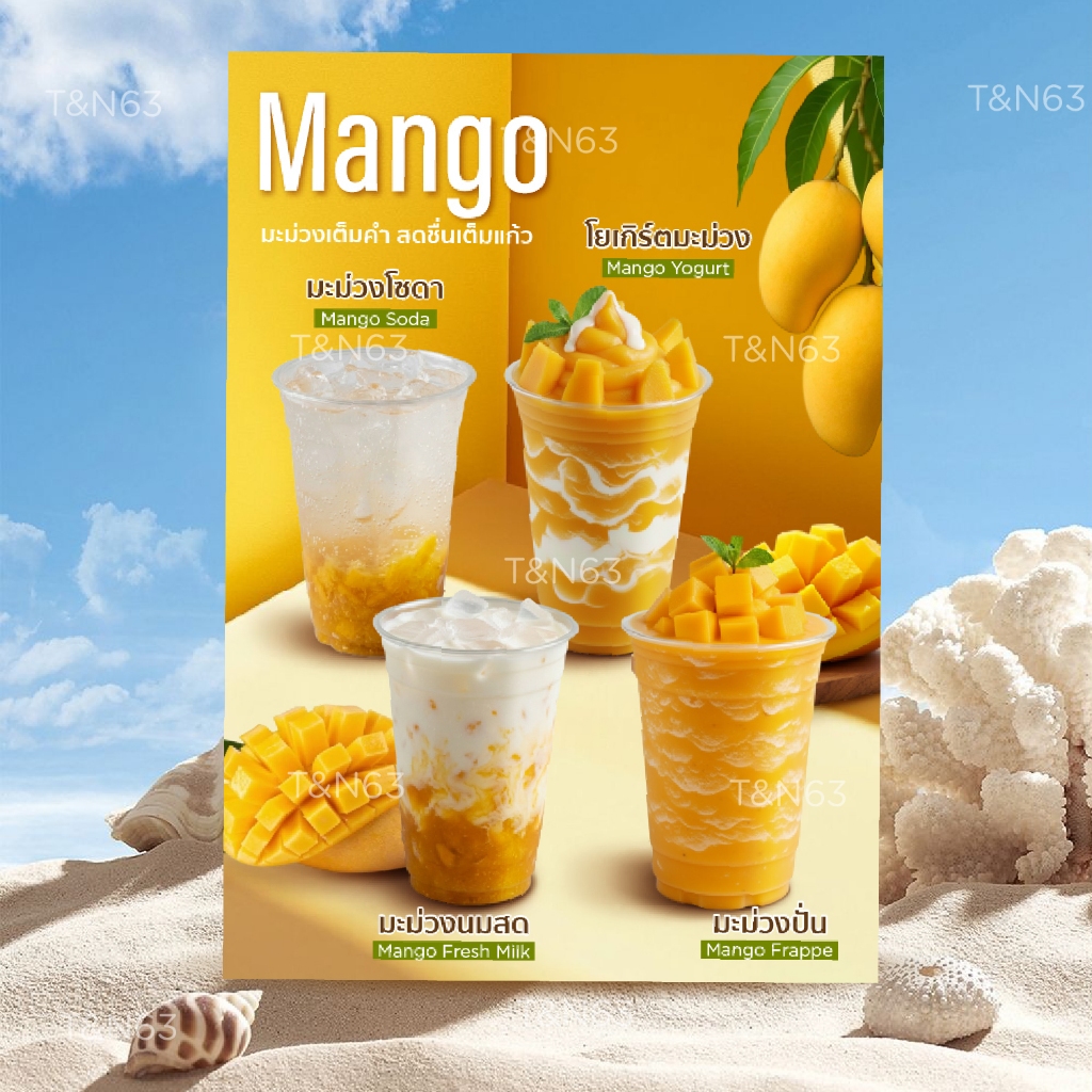 ป้ายเมนูเครื่องดื่ม เมนู มะม่วง ป้ายน้ำผลไม้ ป้ายเมนูตามฤดู A4 เคลือบกันน้ำ | พิมพ์สีสด เมนูน่าร้อน