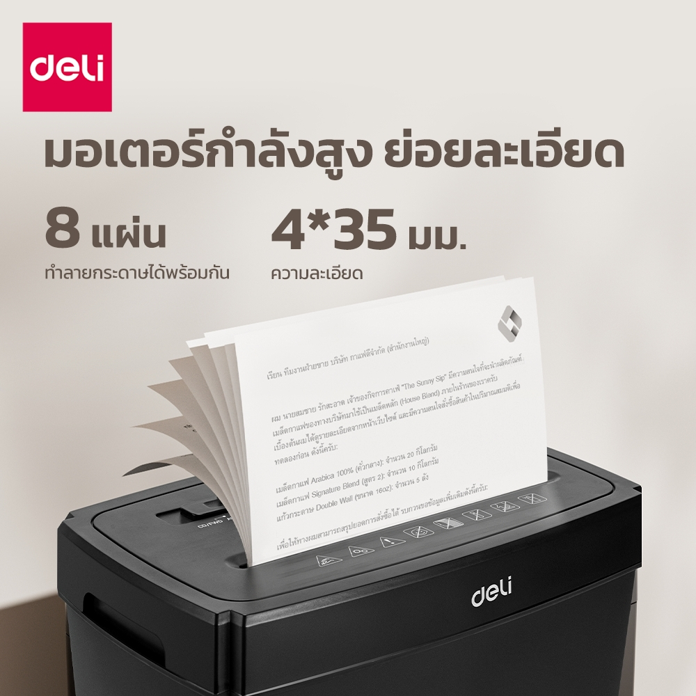 Deli เครื่องทำลายเอกสาร 15ลิตร เครื่องย่อยCD การ์ด เสียงเบา วัสดุแข็งแรง ทำลายเร็ว Paper Shredder
